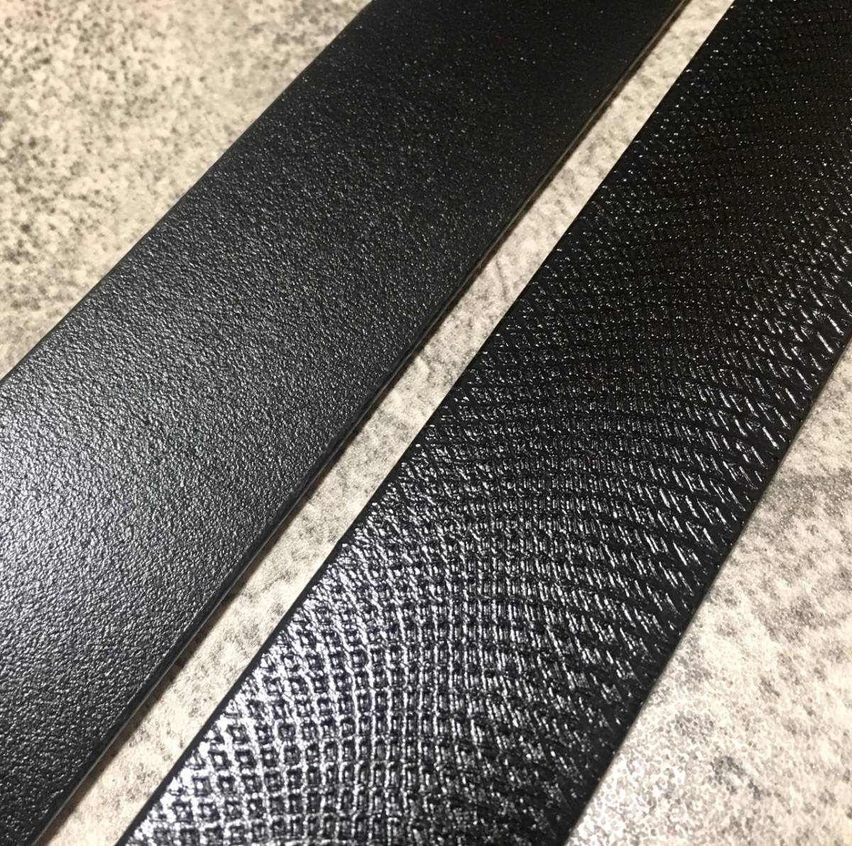 牛革素材の上面にコーティング型押しされた合成素材が圧着されており、