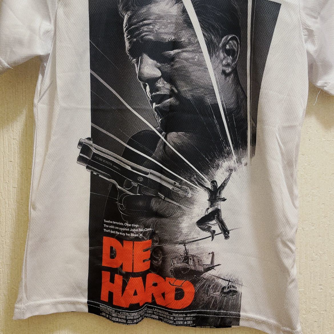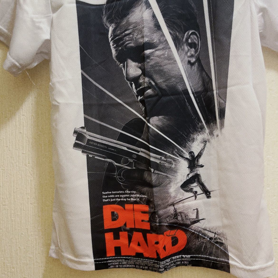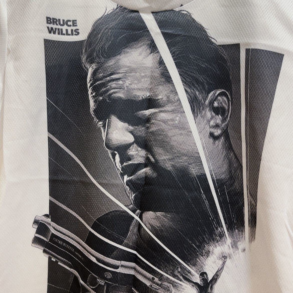 ★ホワイト地に1989年公開された大人気映画シリーズ、ダイハードのジョーンマクレーン役のブルースウィルスのTシャツです。