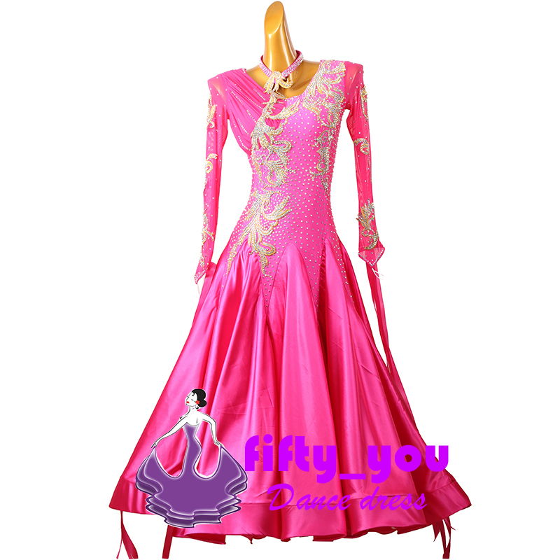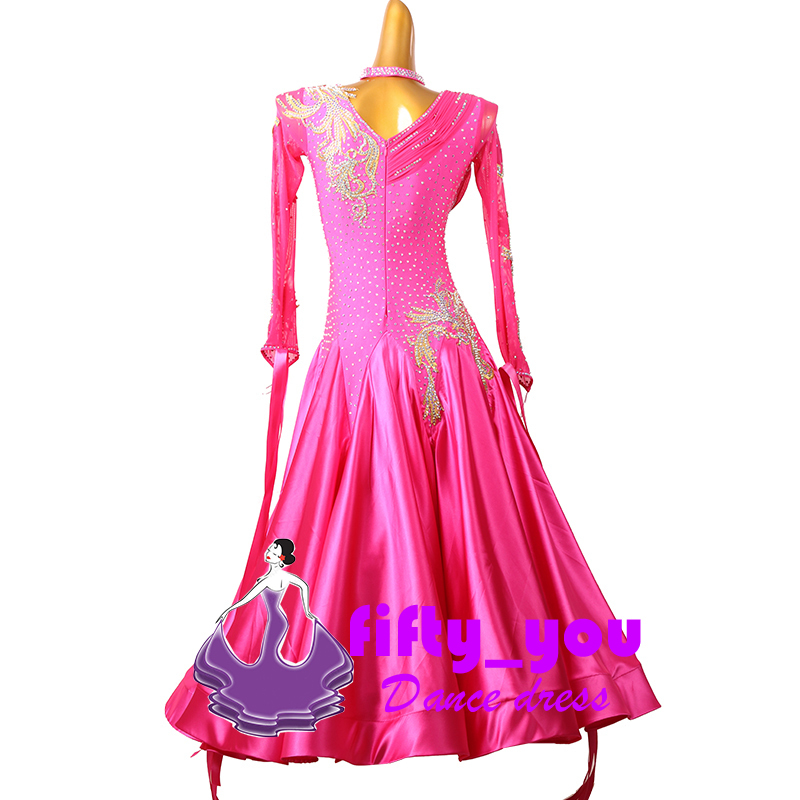 新品fifty_you モダン競技豪華ドレス レディース社交ダンス衣装 サイズセミオーダー ラ イトストーン+モチーフ飾り ローズピンク