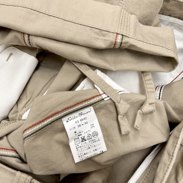 | 商品タイトル | エディーバウアー Eddie Bauer パンツ ヘリンボーン ストレート ウエストに紐 裾ロールアップ 綿×レーヨン(ケナフ) 36 ベージュ メンズ |