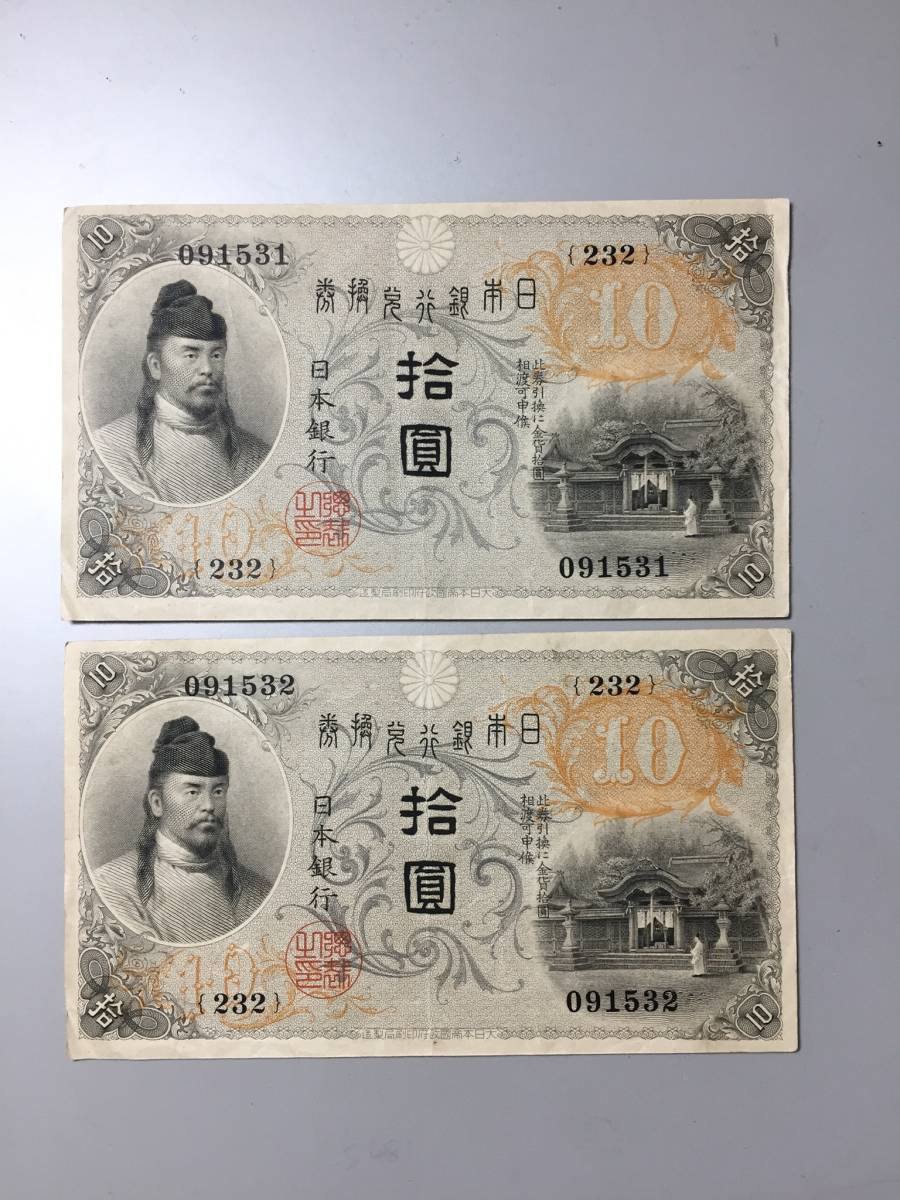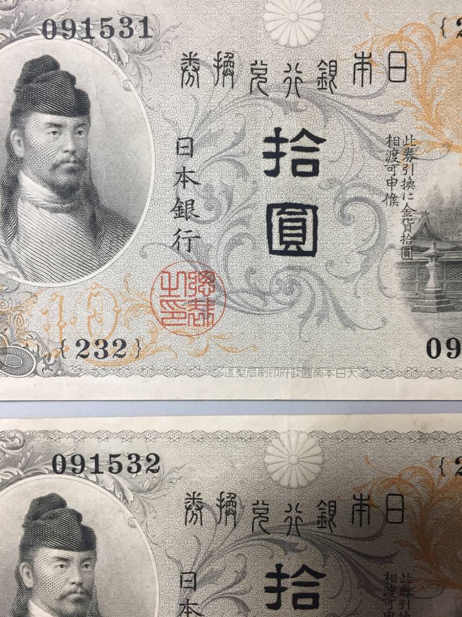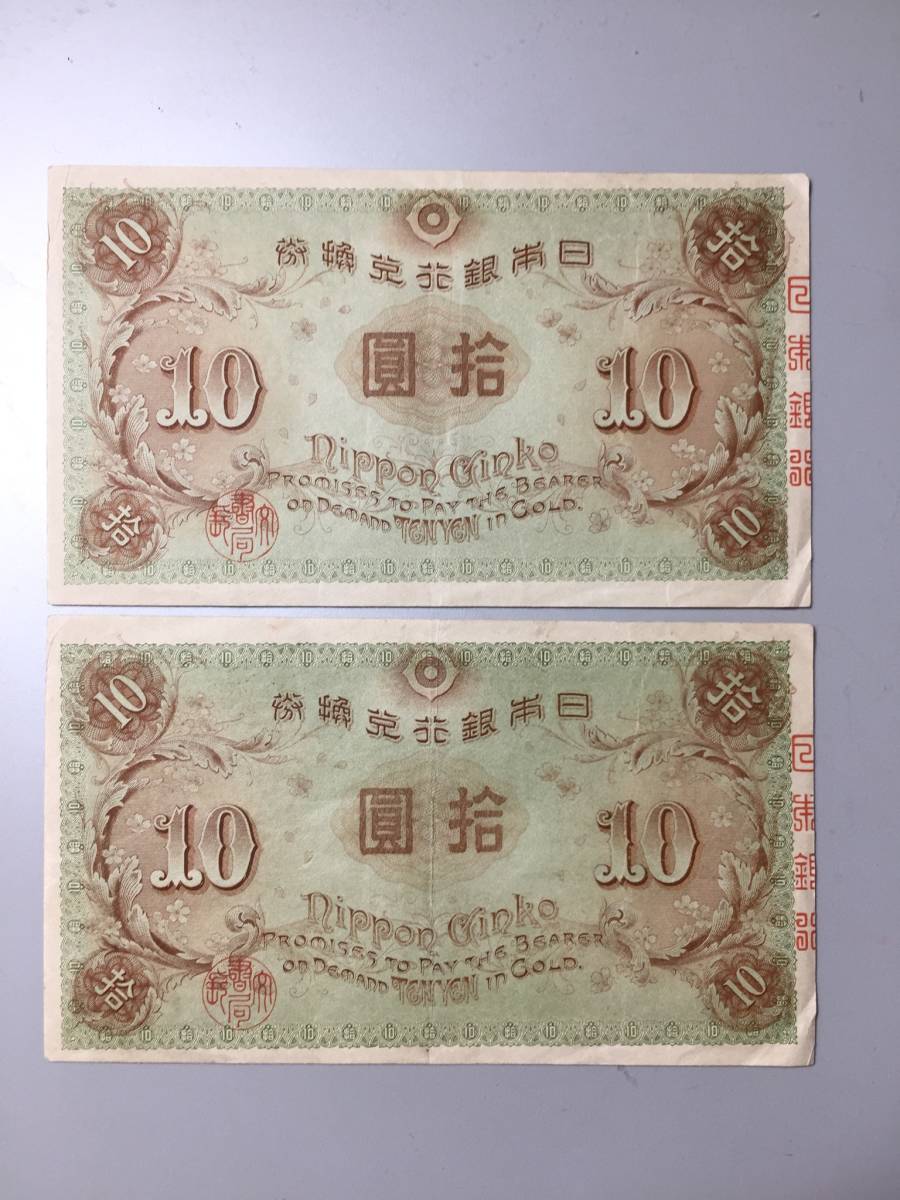 【注目/珍品/レア/希少/貴重】左和気10円札 大正兌換銀行券 2枚 連番