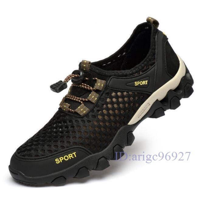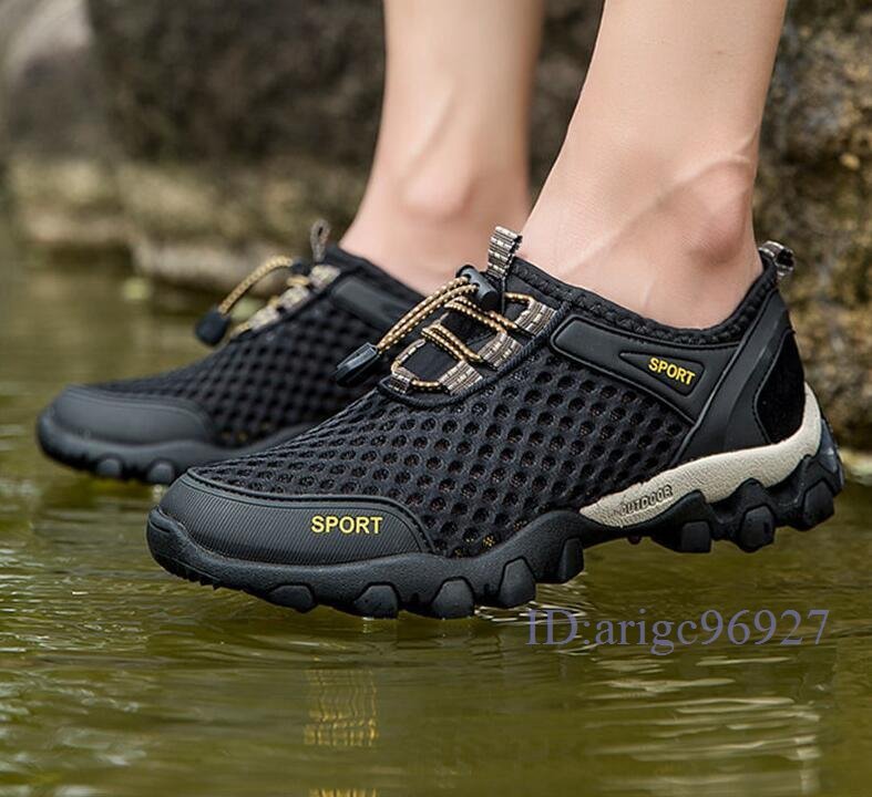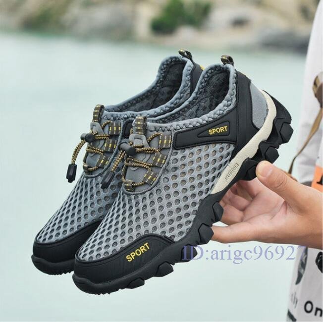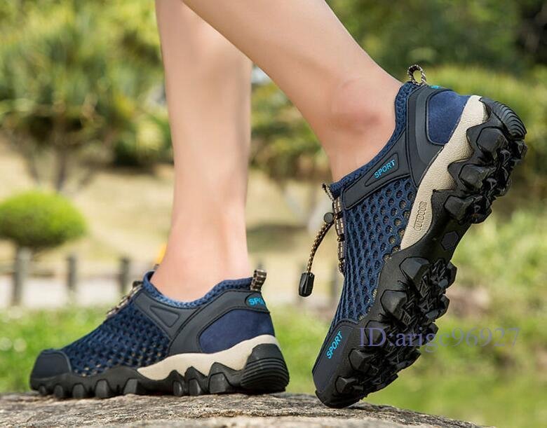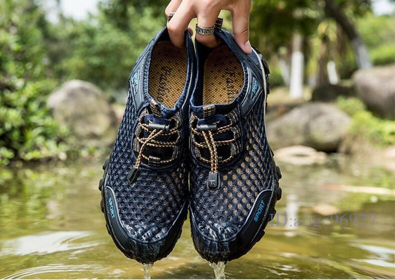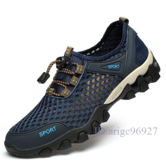 Q982☆新品ウォーターシューズ メンズ スニーカー 水陸両用 アクアシューズ マリンシューズ メッシュ 釣り 靴 ブルー 24.5cm~28cm