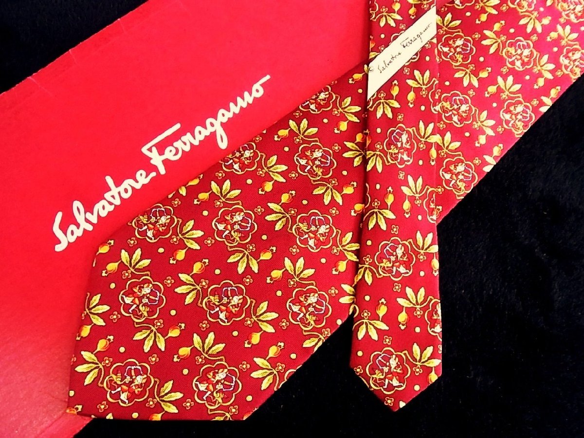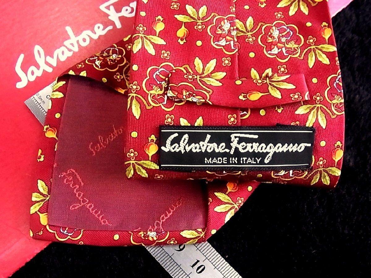 ♪今週の特売980円~♪2127♪良品【Ferragamo】フェラガモ【狩り 花 葉っぱ 植物 柄】ネクタイ♪