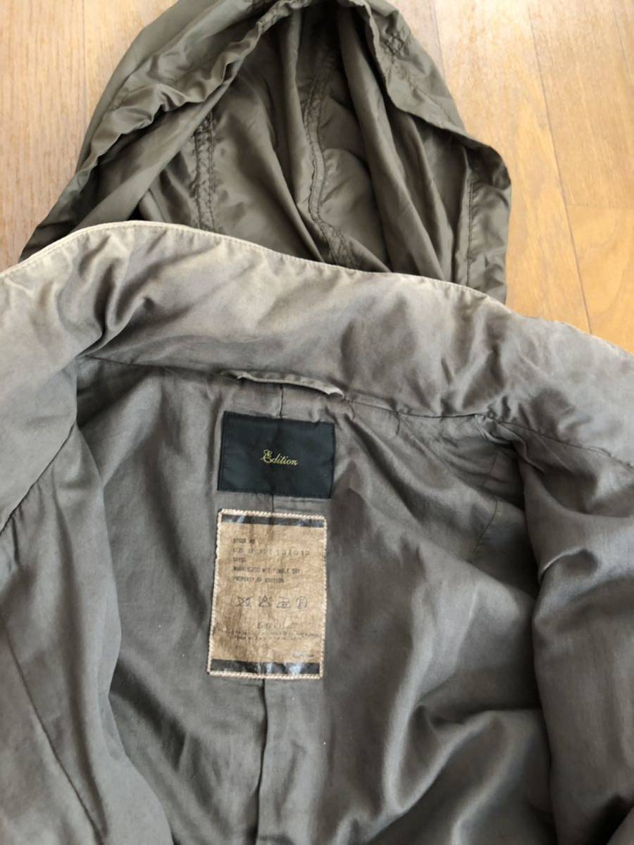トゥモローランド Edition エディション のミリタリージャケットです。そんなに着用しませんでしたので、状態はまずまずだと思います。写真では色落ちしているように見えますがもともとの加工デザインです。