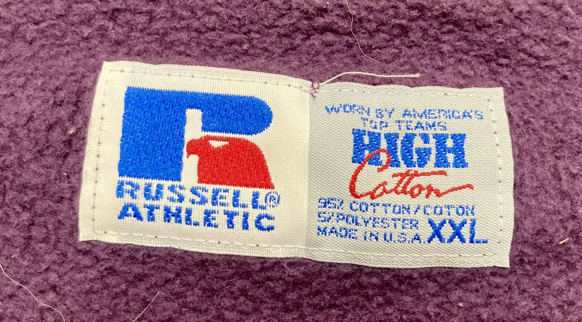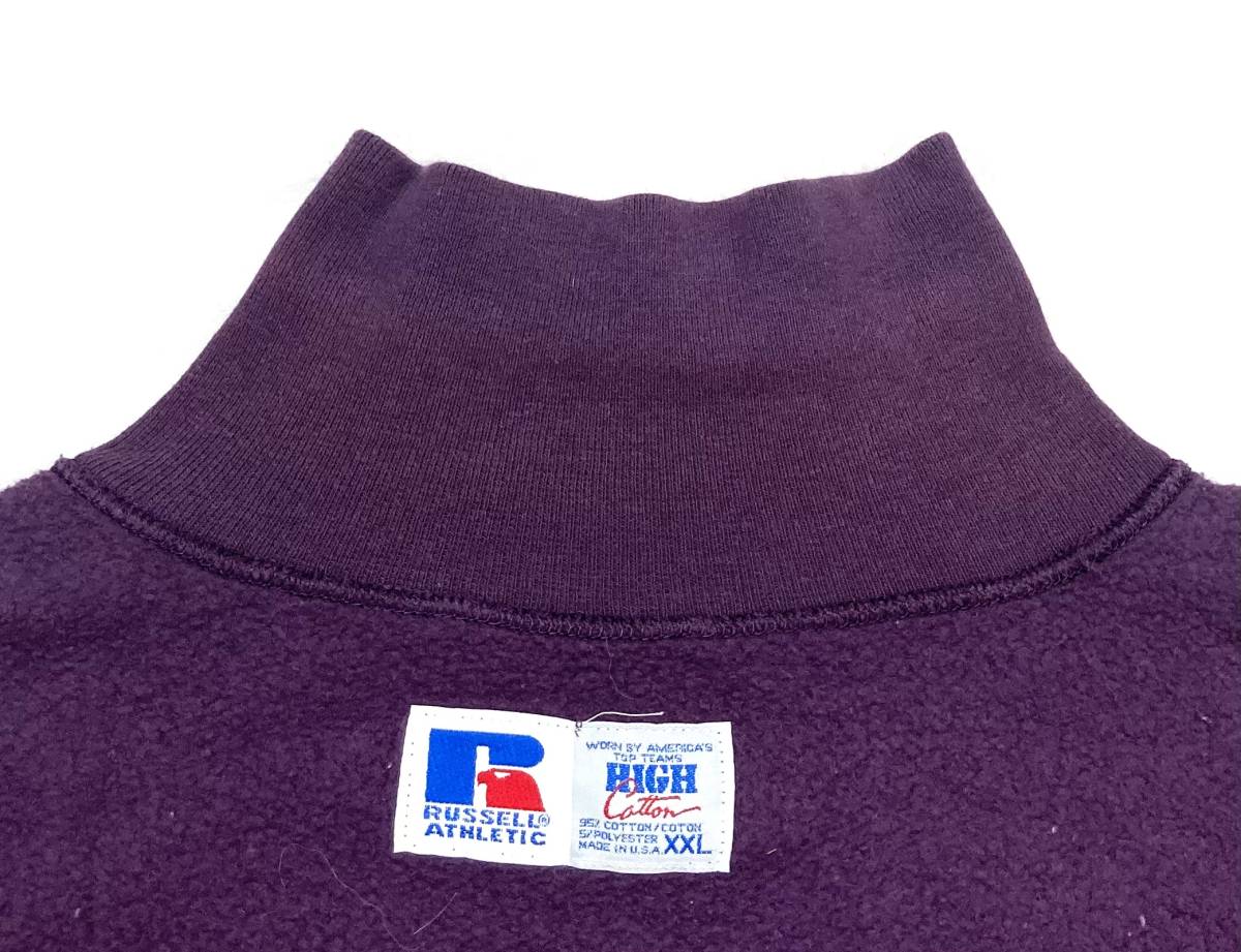 90s USA製 RUSSELL ATHLETIC 前V タートルネック スエット XXL 紫 ラッセル トレーナー