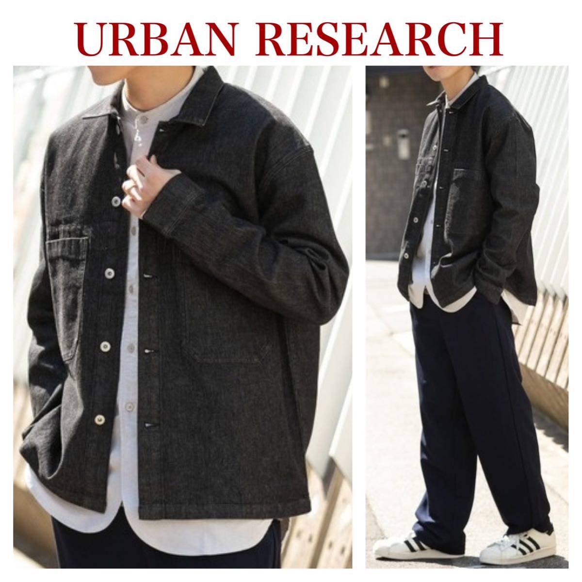 【人気】URBAN RESEARCH アーバンリサーチ ブラックデニム ワークジャケット オーバーサイズ メンズ ゆったり サイズM カバーオール R-4839