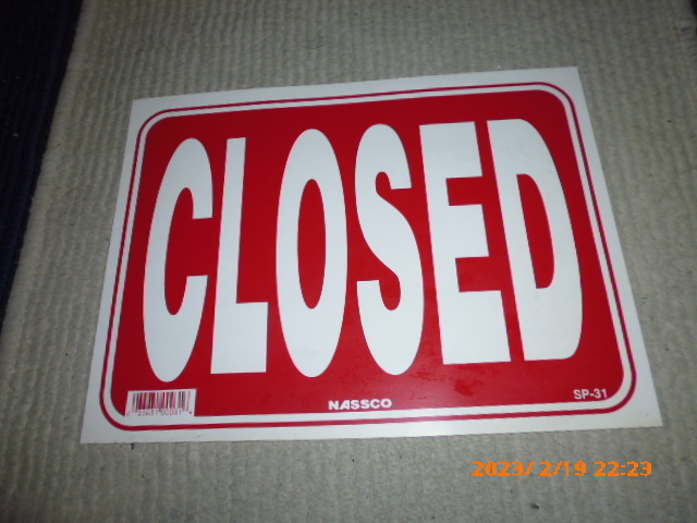 横31cm 縦22.5cm 薄いプラスチック製 アメリカ製 表はCLOSEDで 裏は何も書いて有りません。