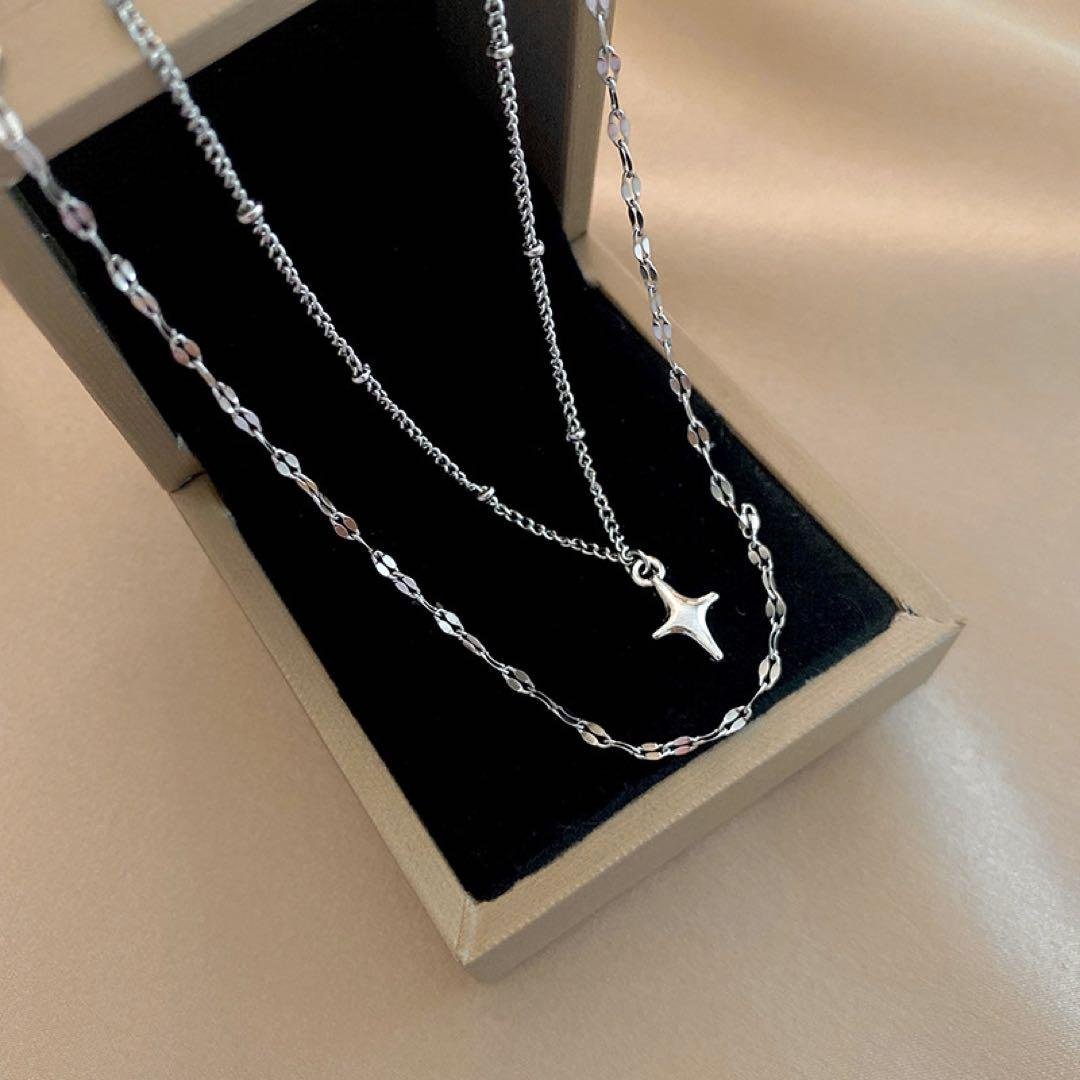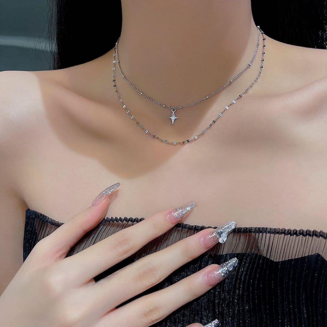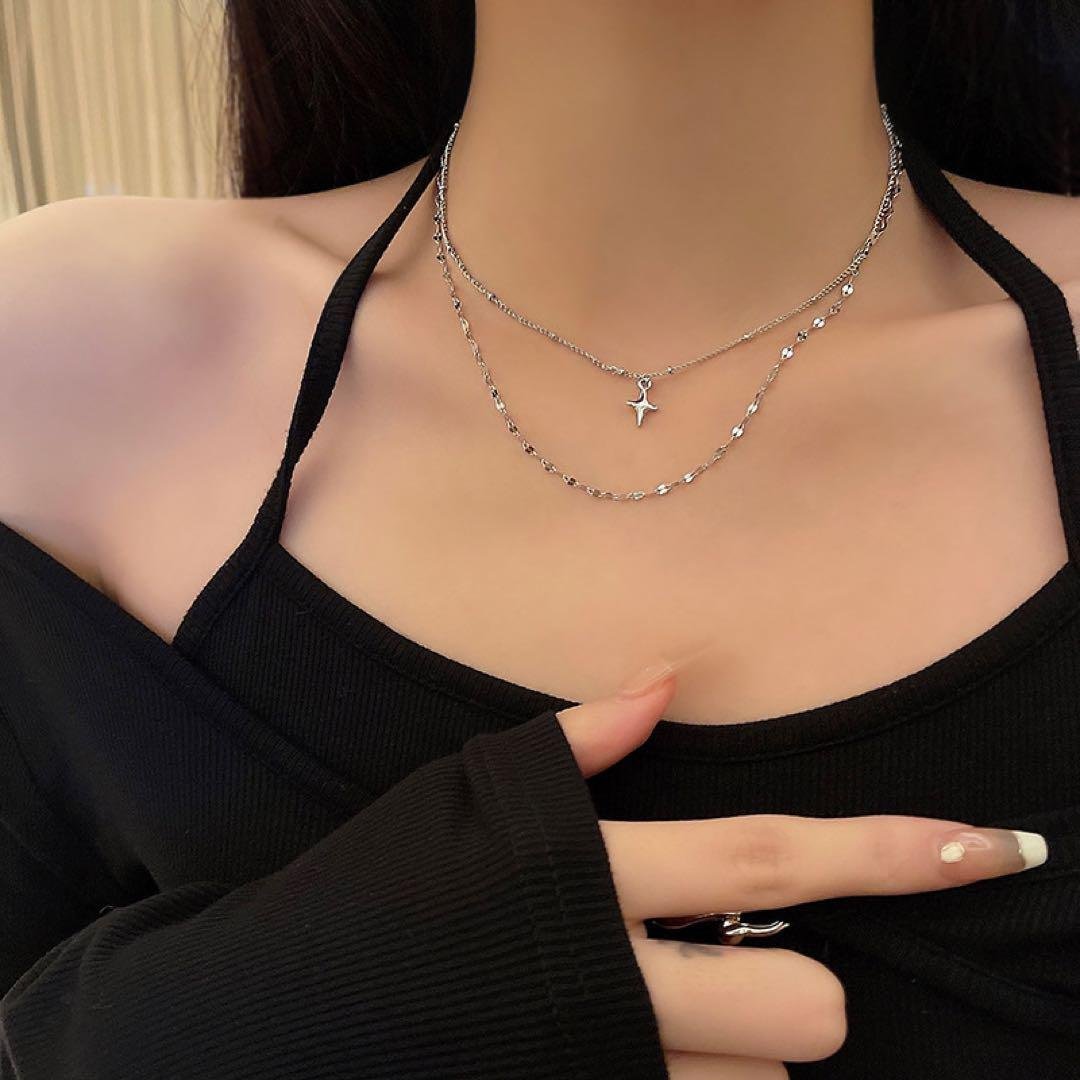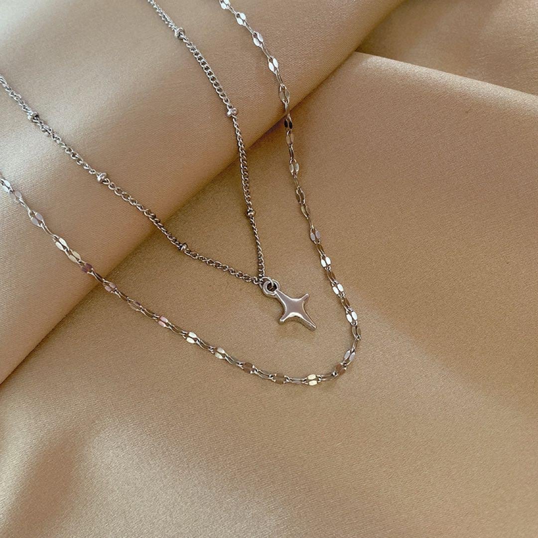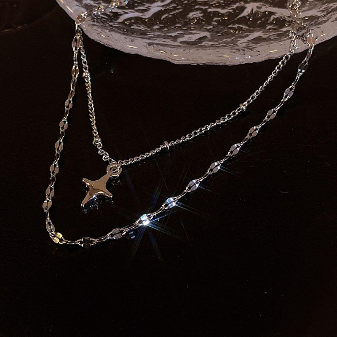 レディース ネックレス 星 シルバー色 二層ネックレス