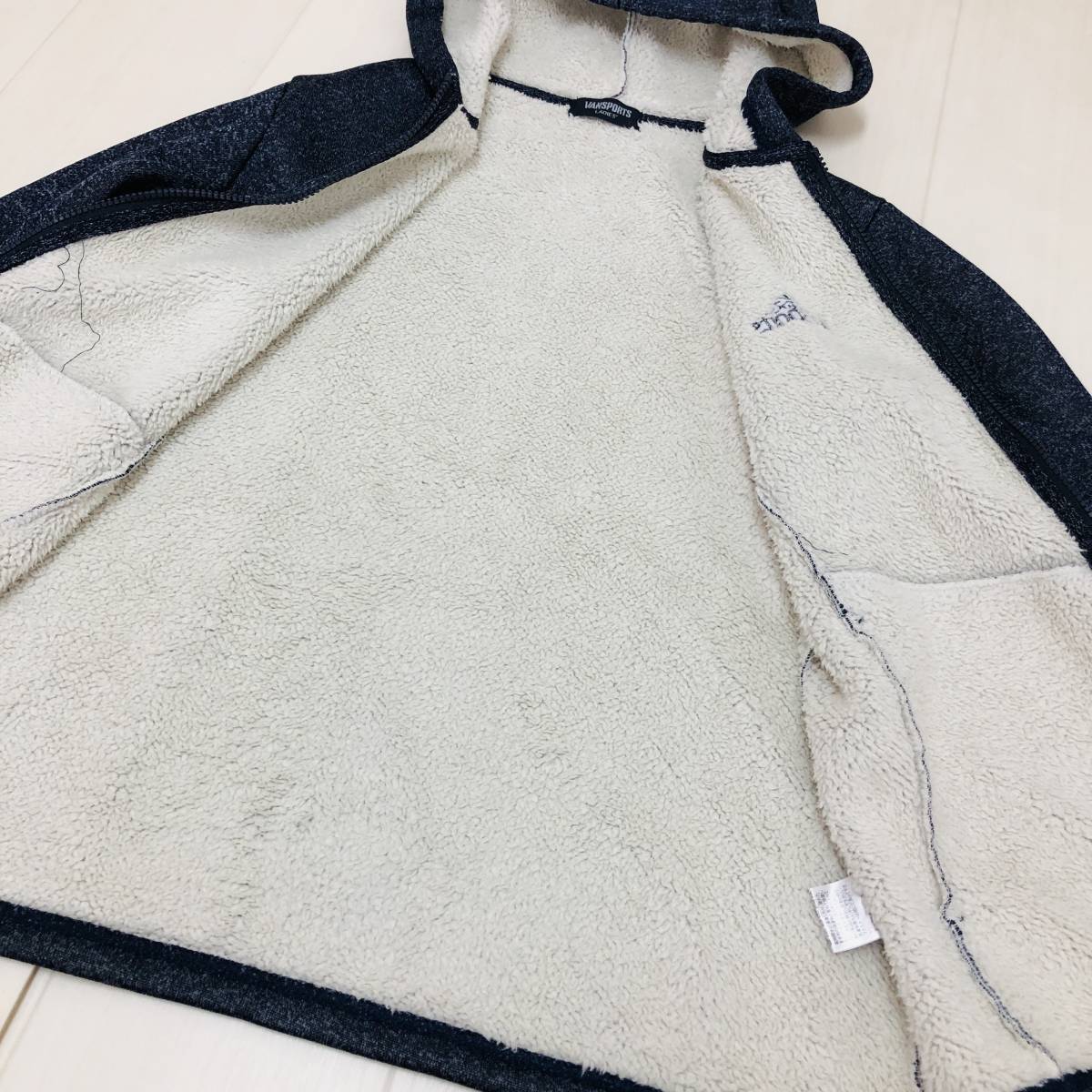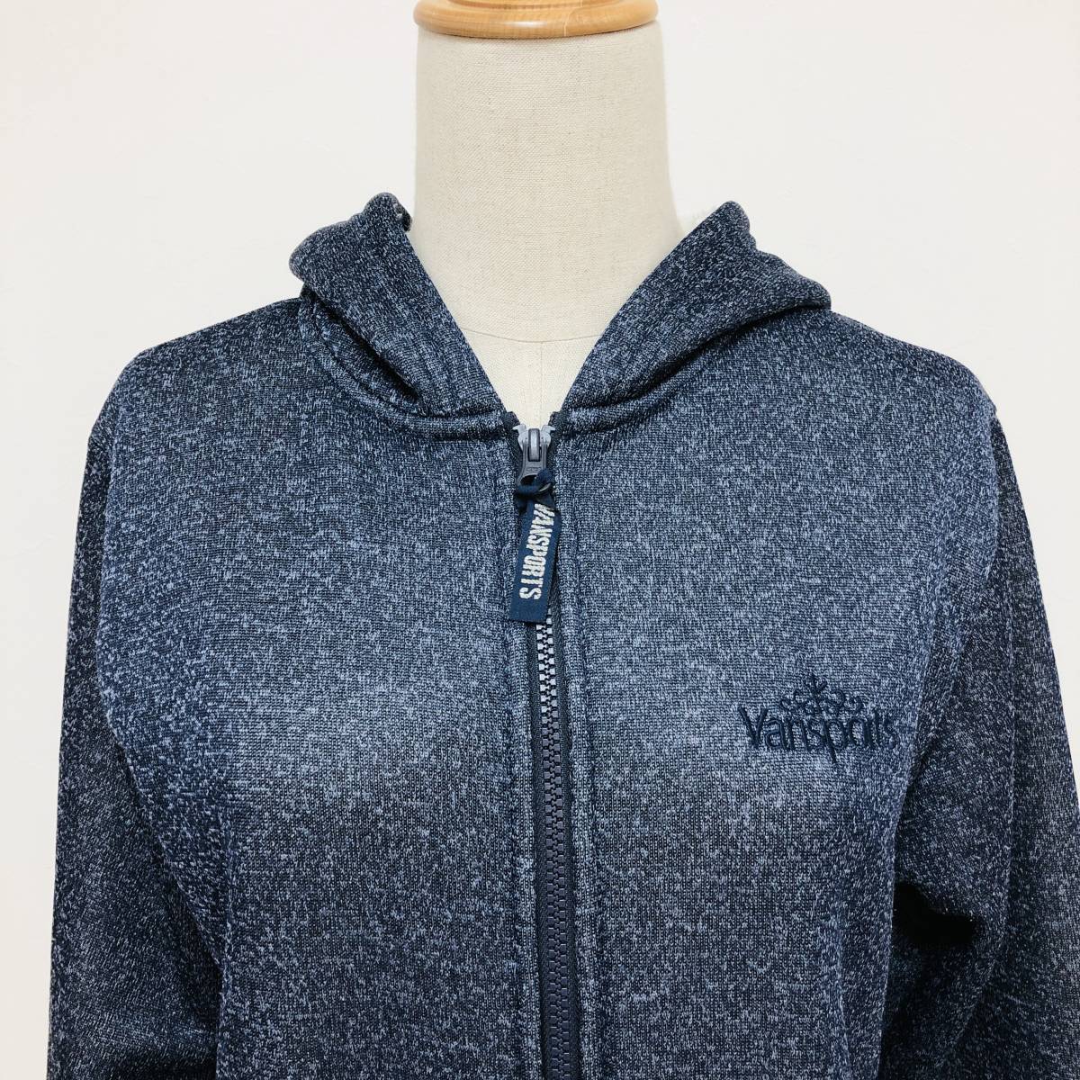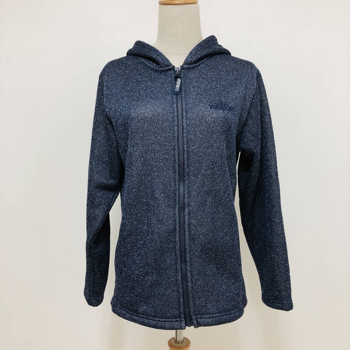 k1242 美品 VANSPORTS バンスポーツ パーカー フルジップ 長袖 ロゴ刺しゅう ポケット L ネイビー レディース スポーティチックスタイル