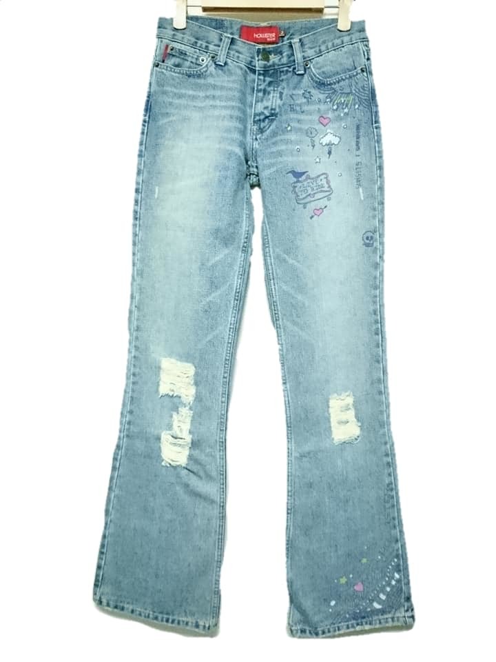 大人気インポートブランド『HOLLISTER/ホリスター』の2005年に発売されたヴィンテージ加工ポップアートプリント/ベルボトム/裾フレア/デニムパンツです。