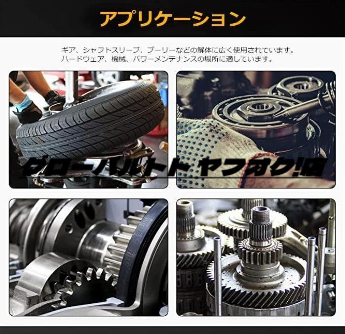 【用途】ベアリングとシャフトを分離させる分解工具です。各種機械装置のプーリー、ギア、ベアリングなどの取り外しに応用できます。