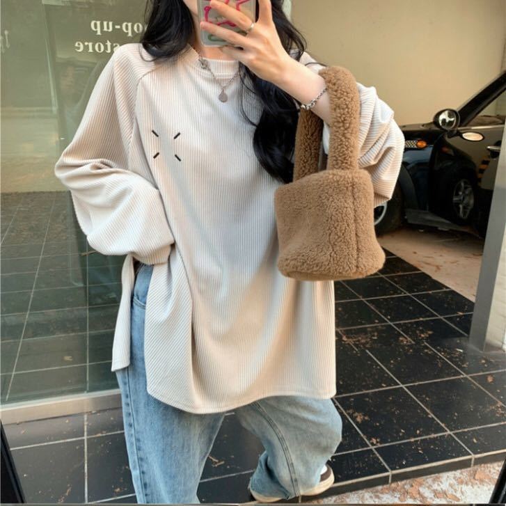 ロングTシャツ 大きいサイズ レディース ロングT トップス Tシャツ 丸首 長袖 シンプル 無地 春秋 ゆったり 可愛い カジュアル LUEA169(2色L-4XL)