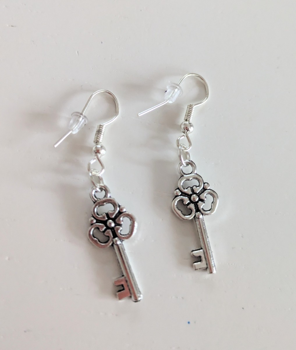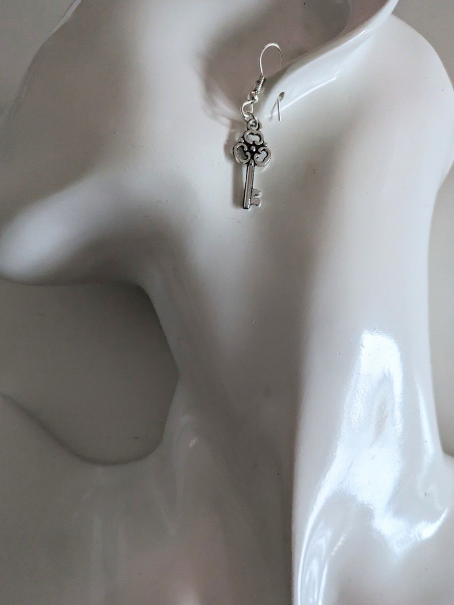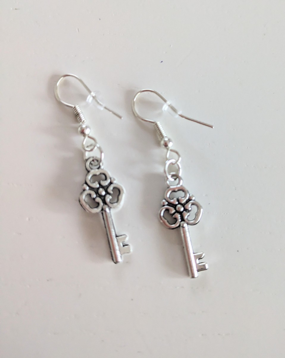こちらは、新品未使用 三つ葉 シルバーカラー 鍵型 キーモチーフ フックピアス になります♪