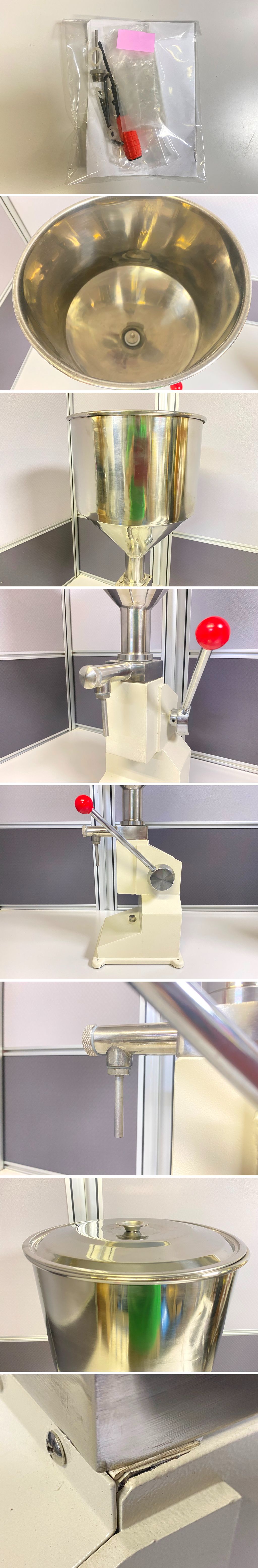 | 商品説明 | ※スマートフォンの方は「商品説明を読む」を タップすると追加画像が表示されます。 付属品:写真に写っている物で全てです。 【仕様・特長】 手動ペースト液体充填マシンです。 管理用:T ★領収書、納品書の発行について 当ストアでは、個人情報保護また環境への配慮の観点から、 領収書、納品書はご要望があった場合を除き送付を廃止とさせていただきます。 領収書、納品書発行をご希望のお客様は、お手数ですが落札の際に 発行ご希望の旨をお伝えください。 |