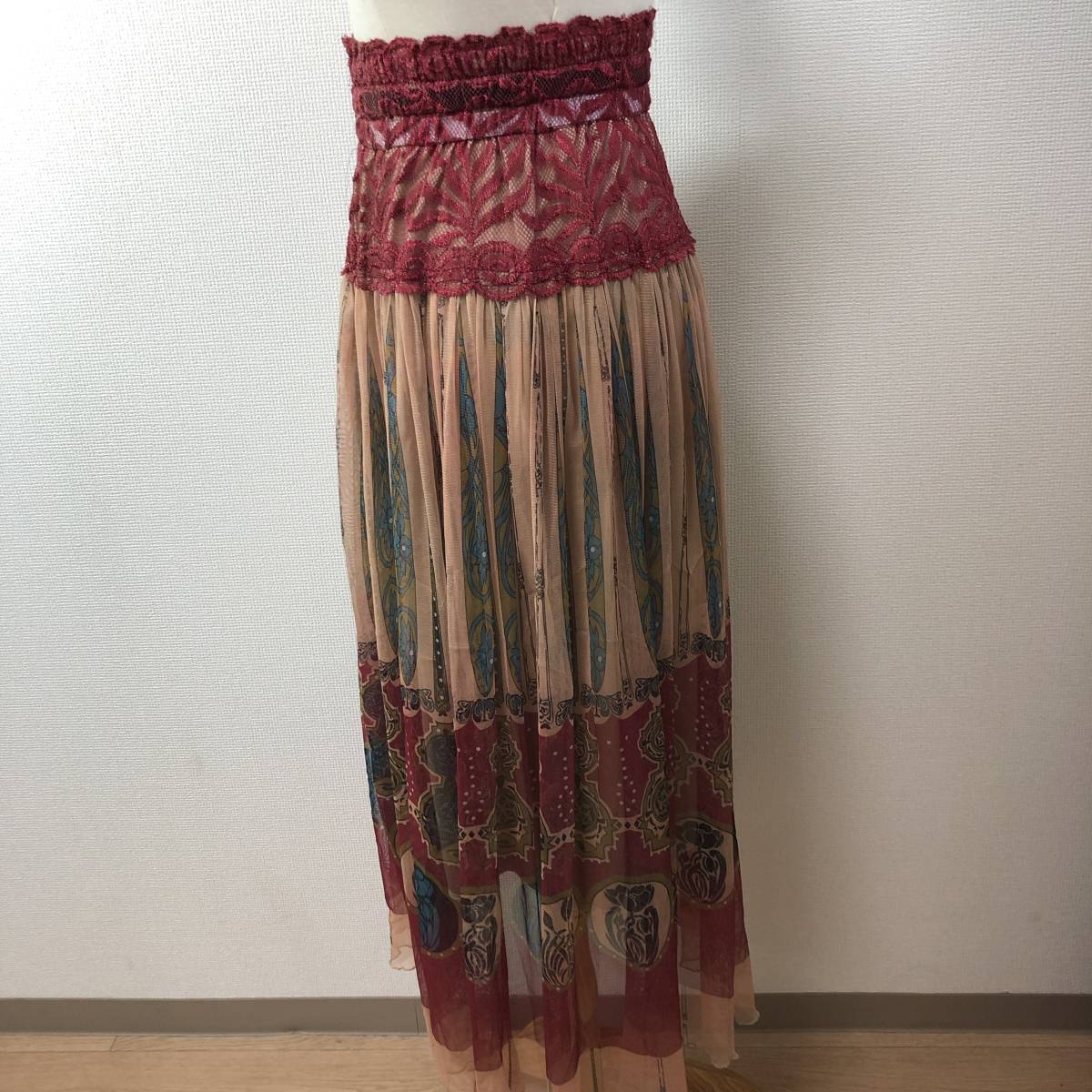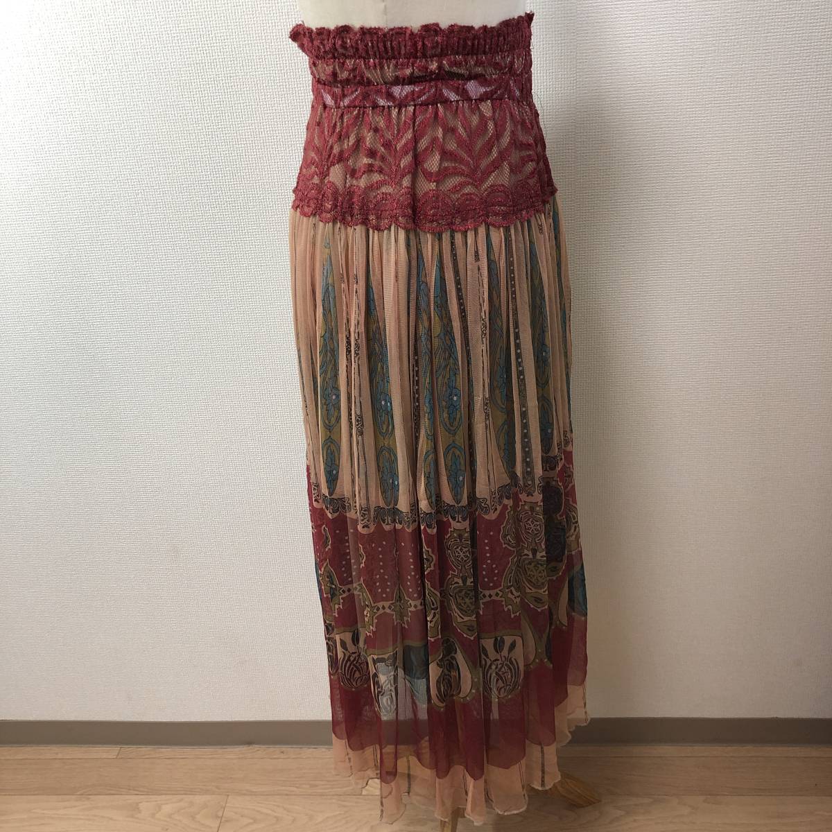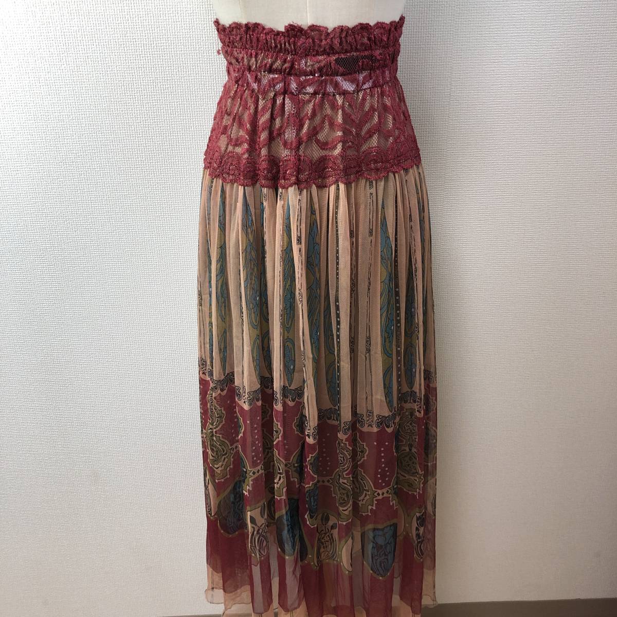 WS0385 レトロ可愛い レディース フレアスカート ロング 美しい レース レア ロマンチック シアー ウエストゴム追加 リメイク
