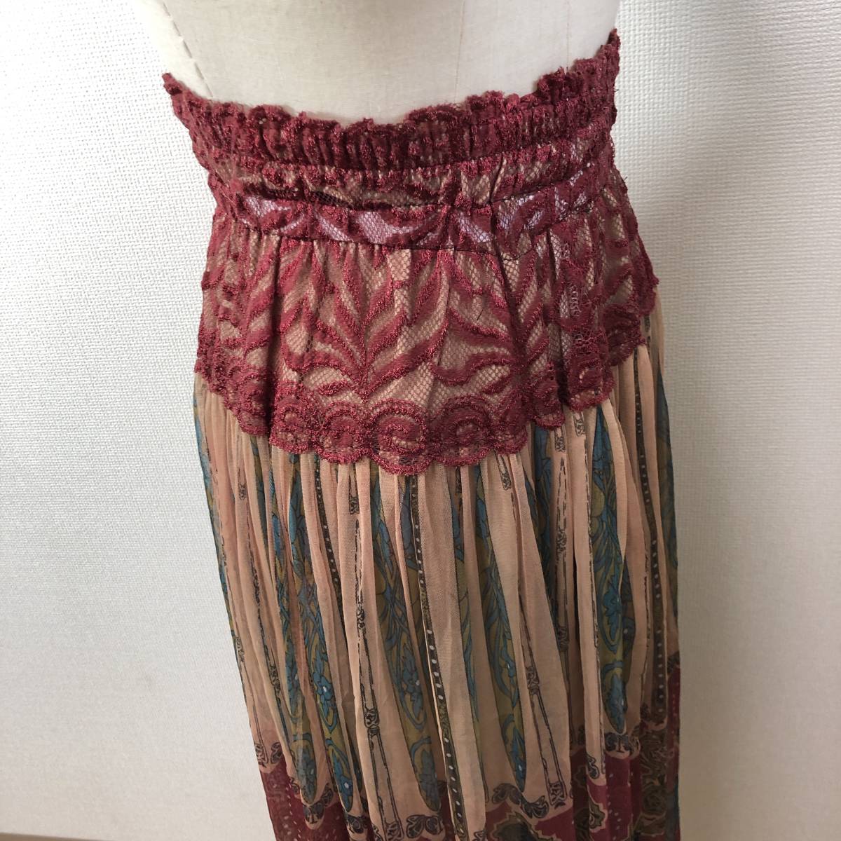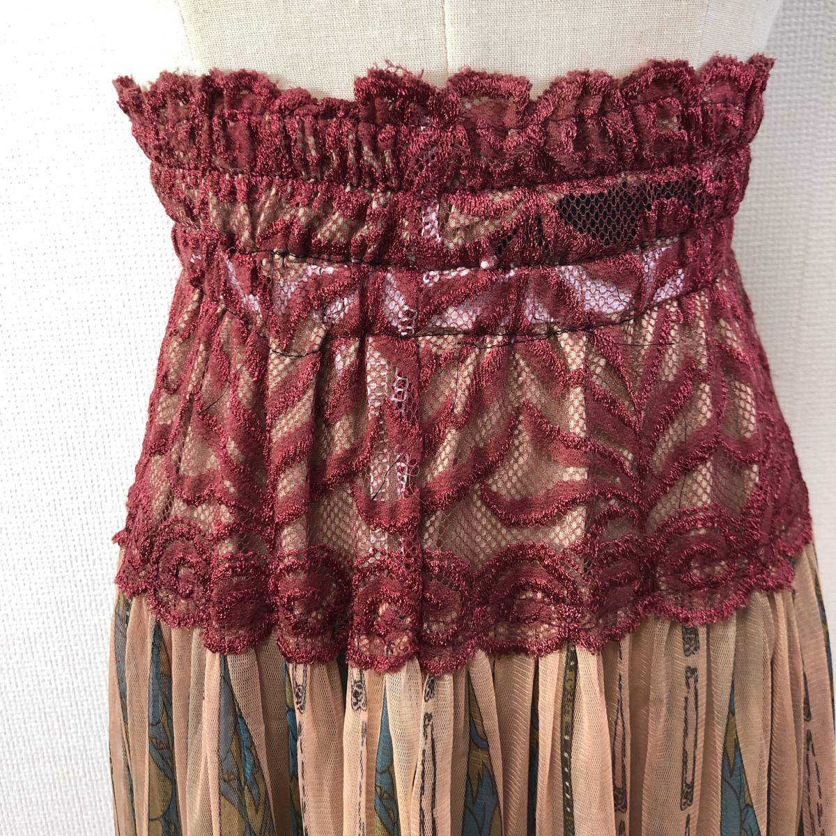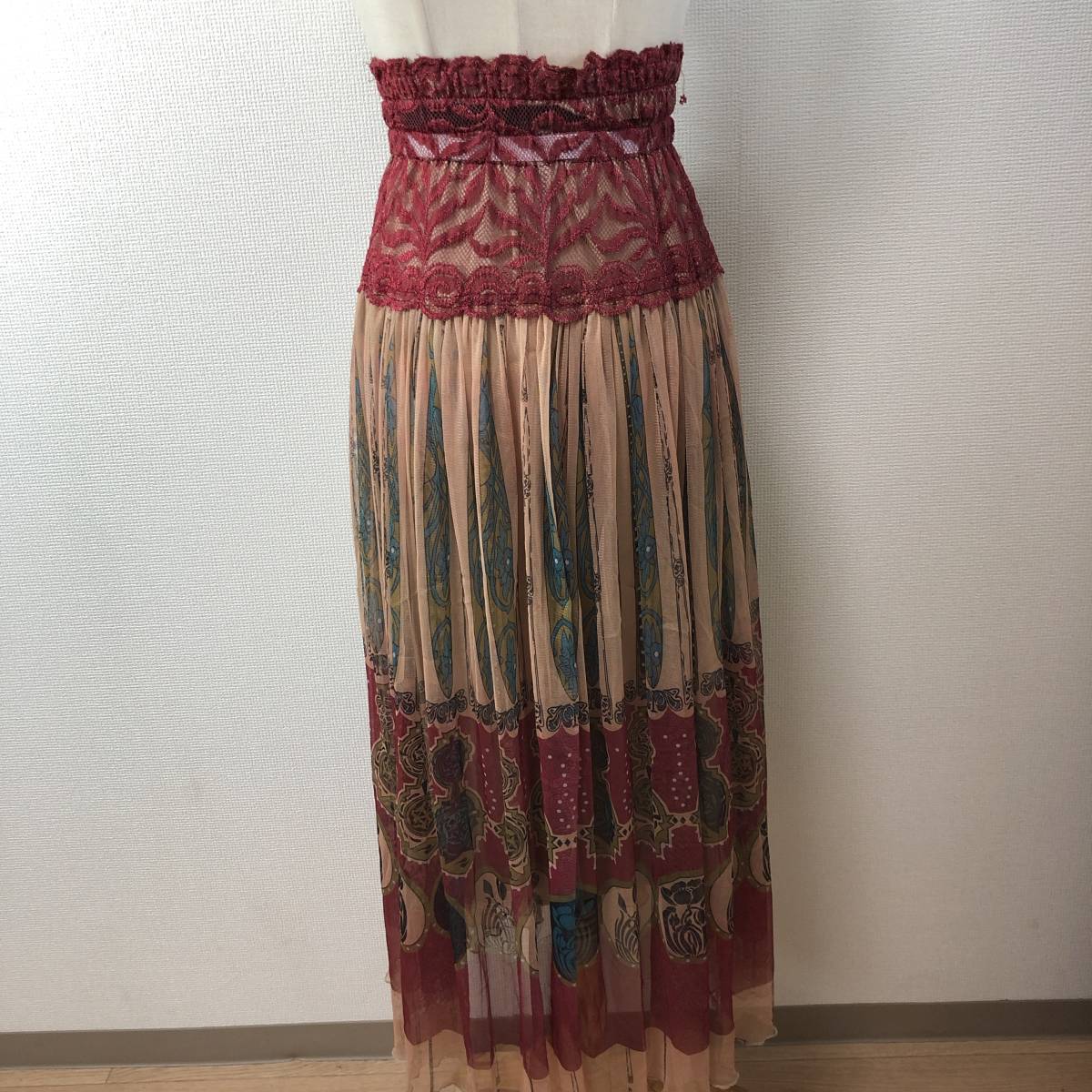 WS0385 レトロ可愛い レディース フレアスカート ロング 美しい レース レア ロマンチック シアー ウエストゴム追加 リメイク
