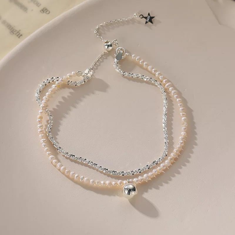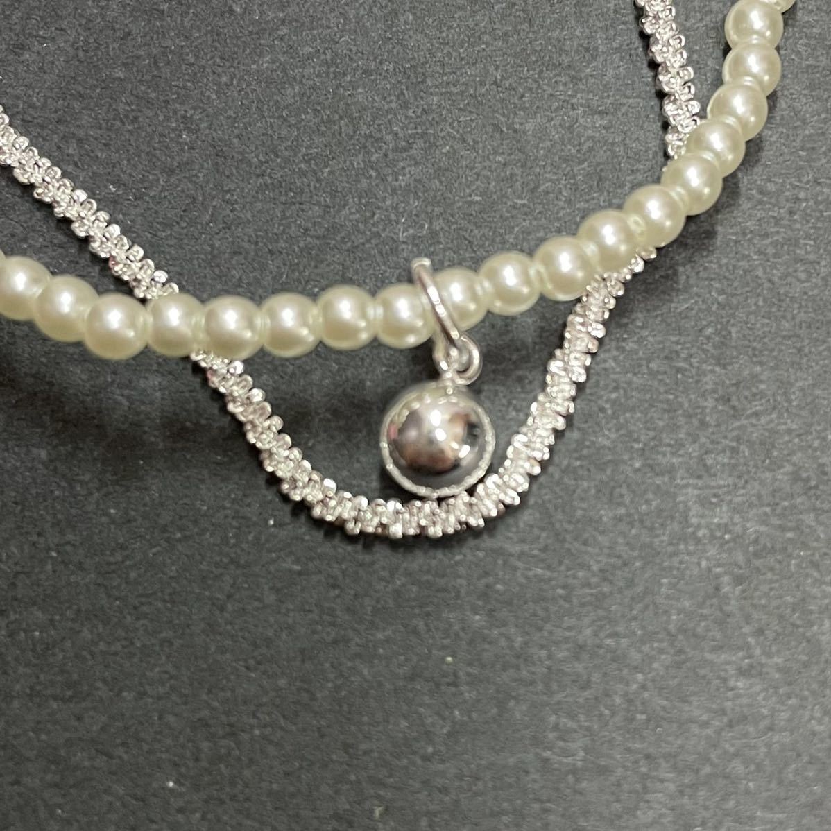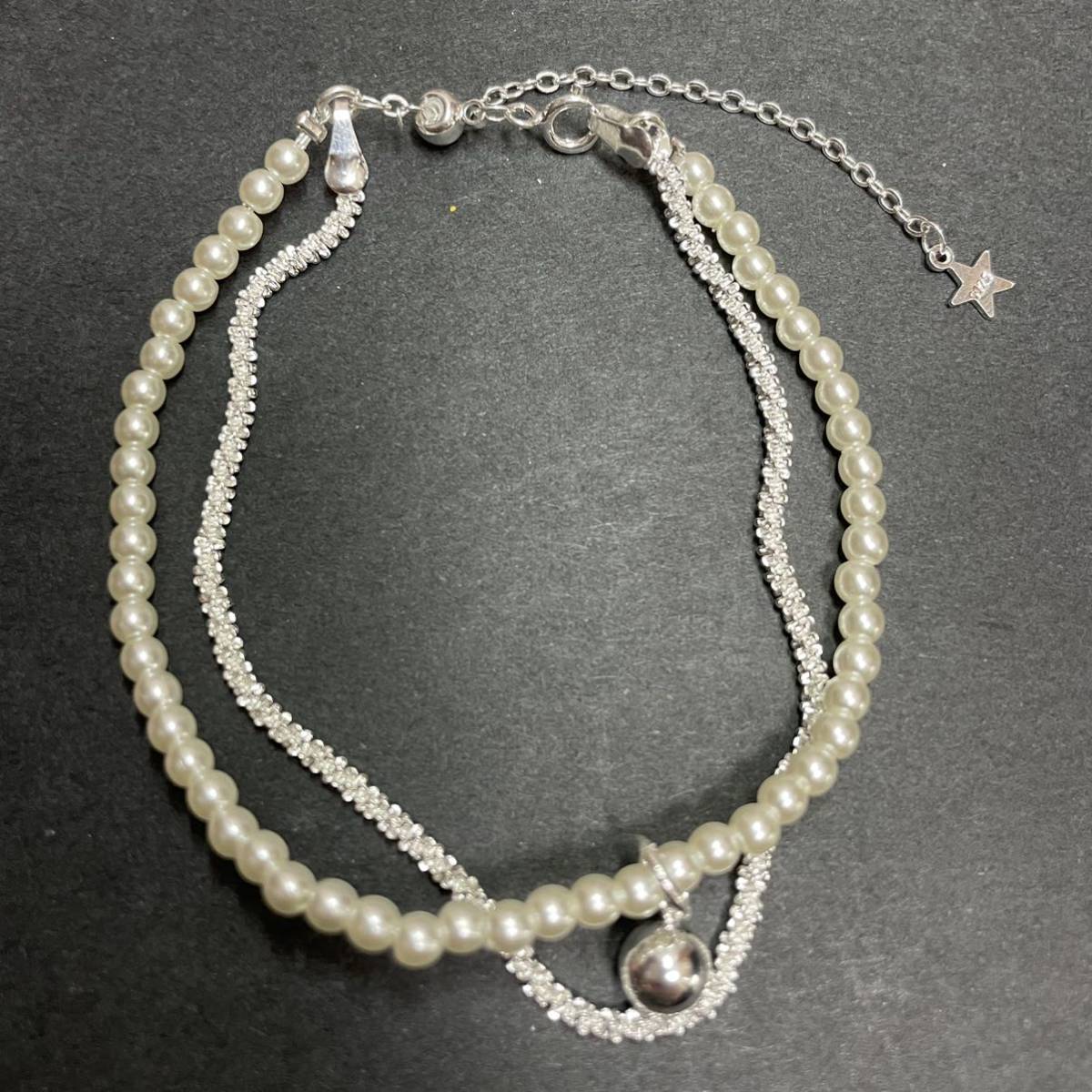 品のある繊細な小粒の人口パールとシルバーの2連ブレスレットになります^ ^