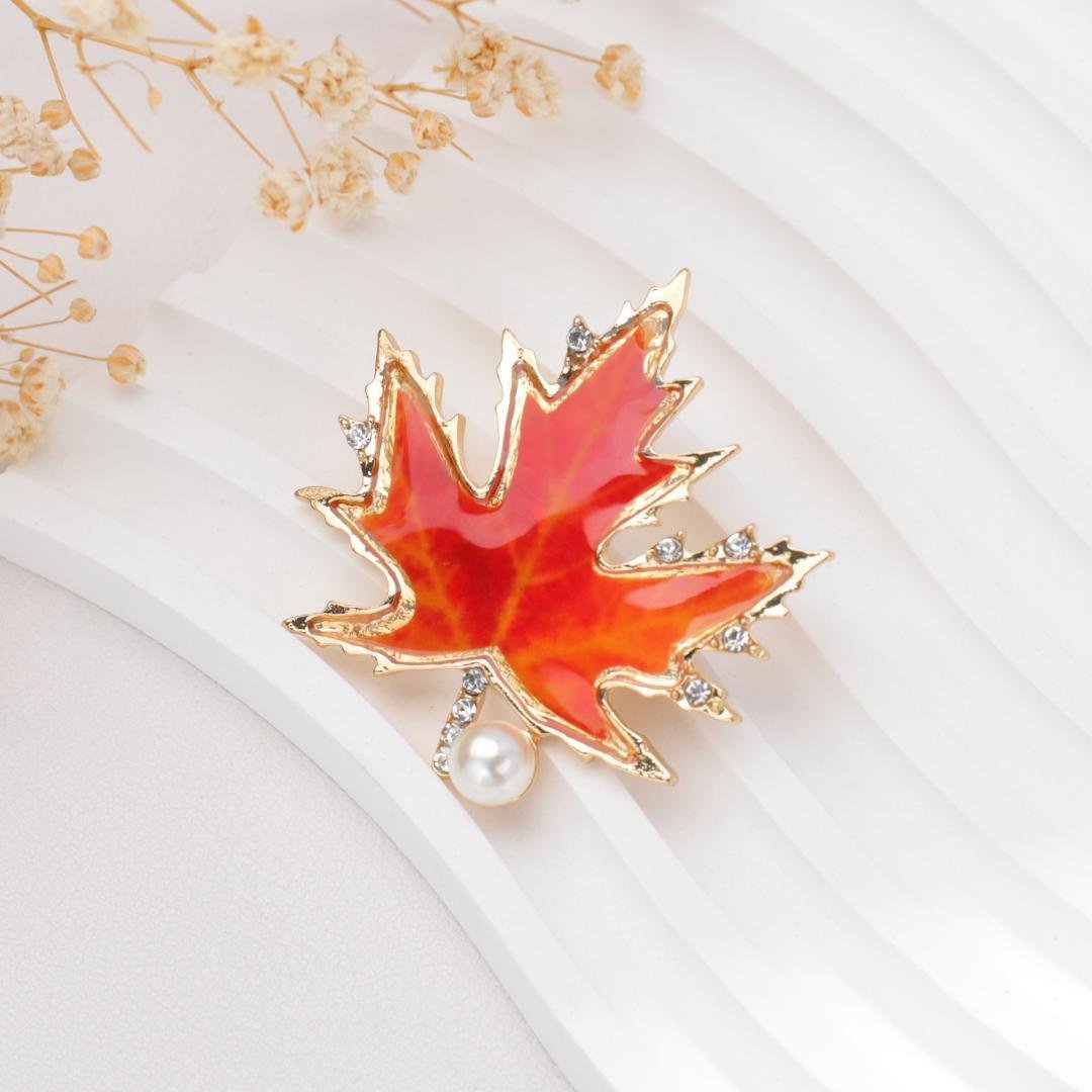 パール 美しい 紅葉 リーフ ブローチ