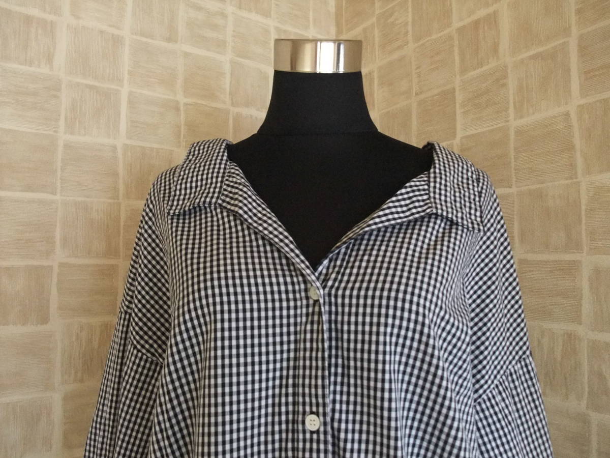 | 【表示サイズ】2 ■実寸サイズ■身幅53㎝・肩幅59㎝・袖丈31㎝・着丈52㎝ ■素材■綿100% ■お色■黒×白 ■状態■2-3回着用しました | |||