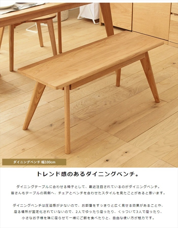 | ダイニングベンチ ダイニングチェア ダイニング ベンチ 単品 組立品 幅100 奥行35 高さ43 木製 天然木 オーク おしゃれ 食卓 キッチン 長椅子 キッチンチェア 食卓チェア 食事 無垢 台 パーティー カフェ 食堂 リビングダイニングチェア ベンチ単品 無垢材 ナチュラル 居間 一人暮らし カップル 夫婦 新生活 ワンルーム 家具 インテリア 2人用 2人掛け 二人用 二人掛け 肘なし 背なし 背もたれなし ウッド 木目 長イス 長いす |