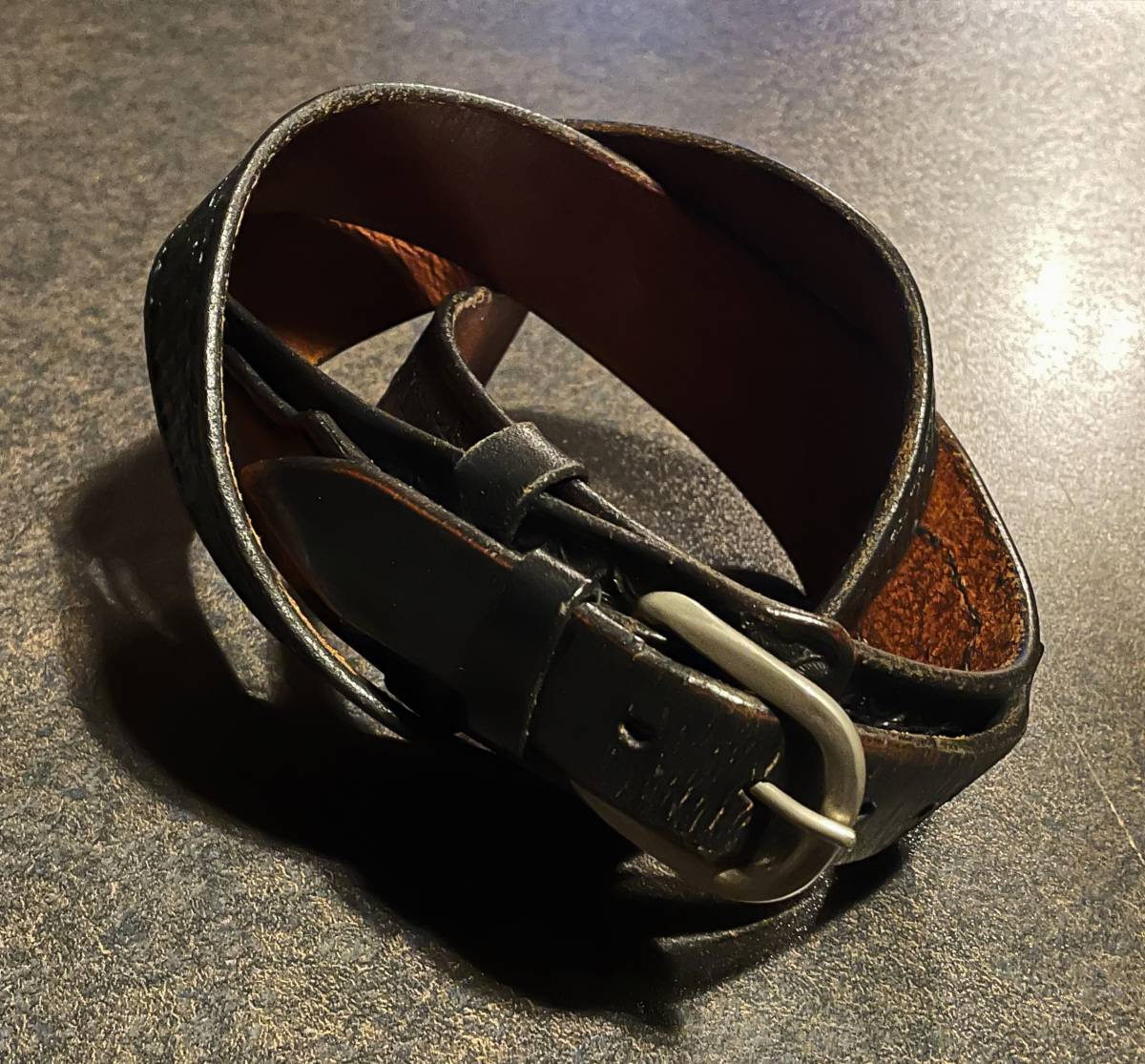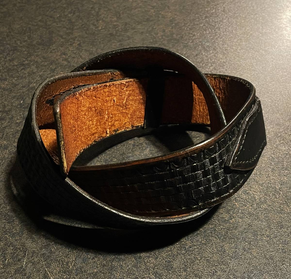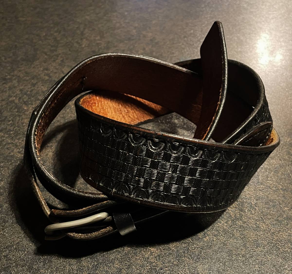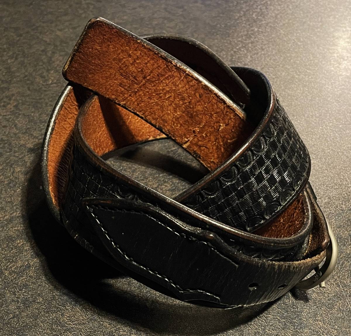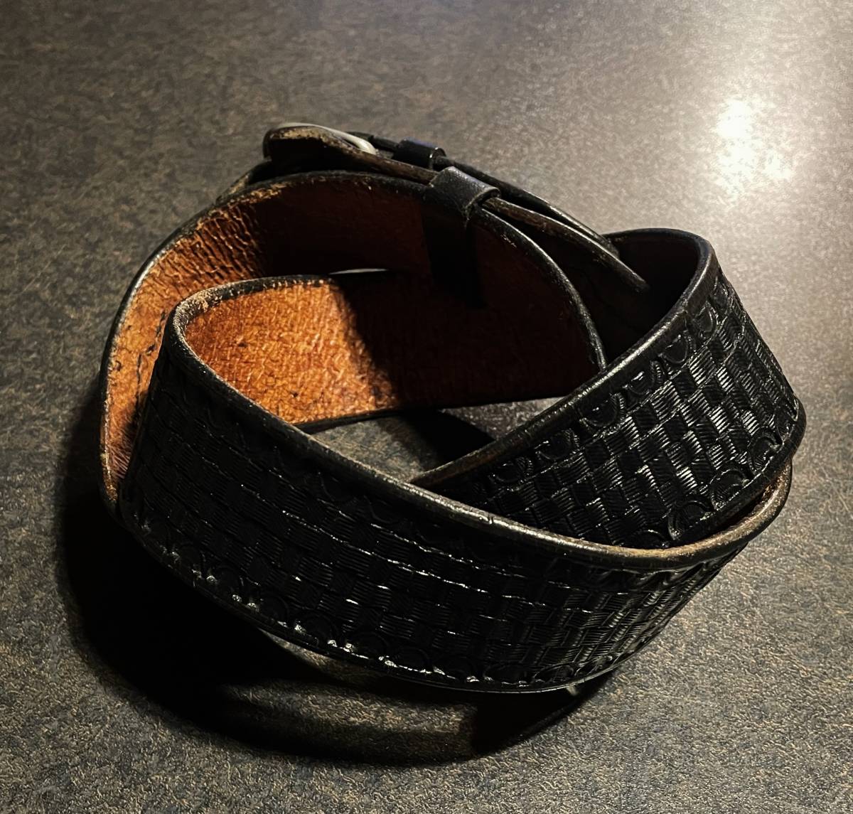 良味80s70sビンテージ茶芯/黒ベルトW34W36L~XL型押し太レザー本革/本皮ウエスタン80年代70年代オールド(米製USA製US製アメリカ製ギャリソン