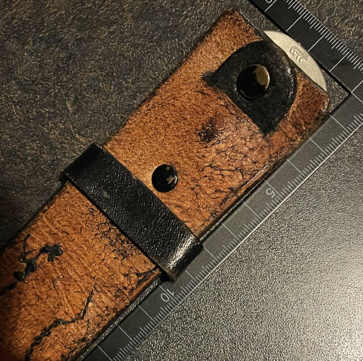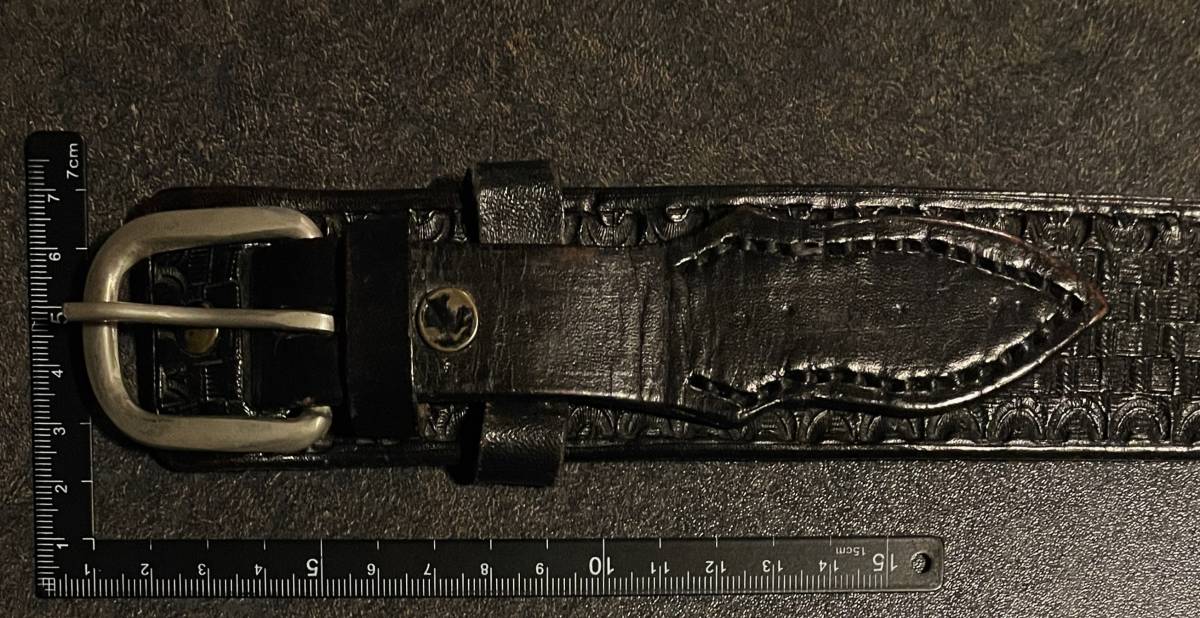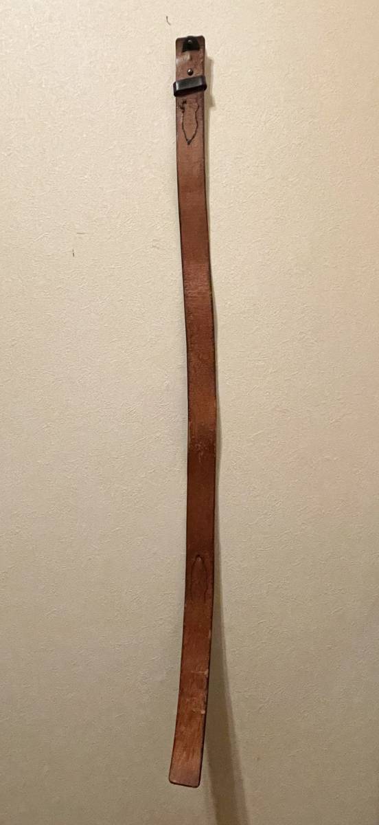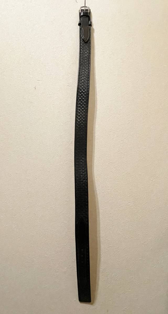 ・実寸(平置き直線):バックル含む全長-約112.5cm バックル付根~ピン穴-約*87~95.5cm ベルト幅-約4.5cm ・コンディション:特に裏面の表皮のクラックが顕著な個体です。