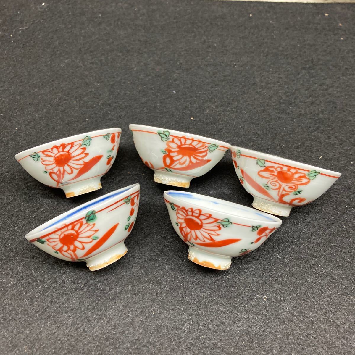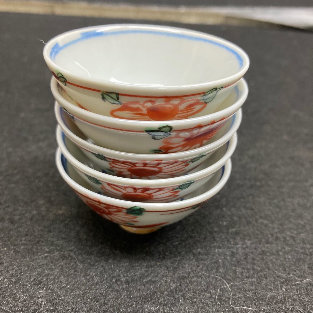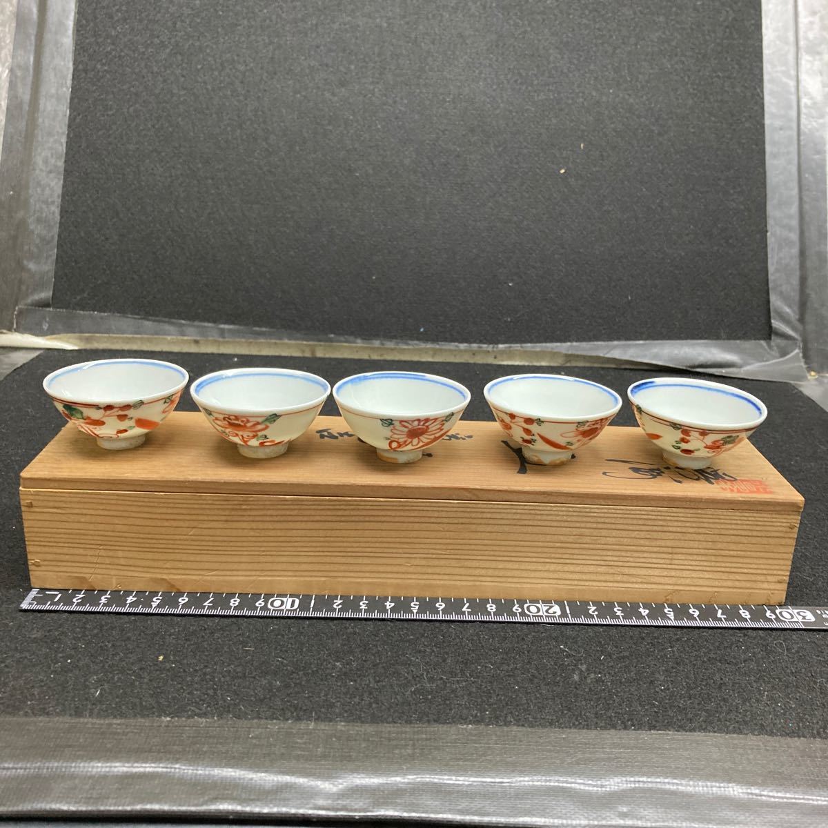 京焼き 橘吉造 呉須赤絵 盃   五客組 共箱付き アンテーク  盃に陶印有りません