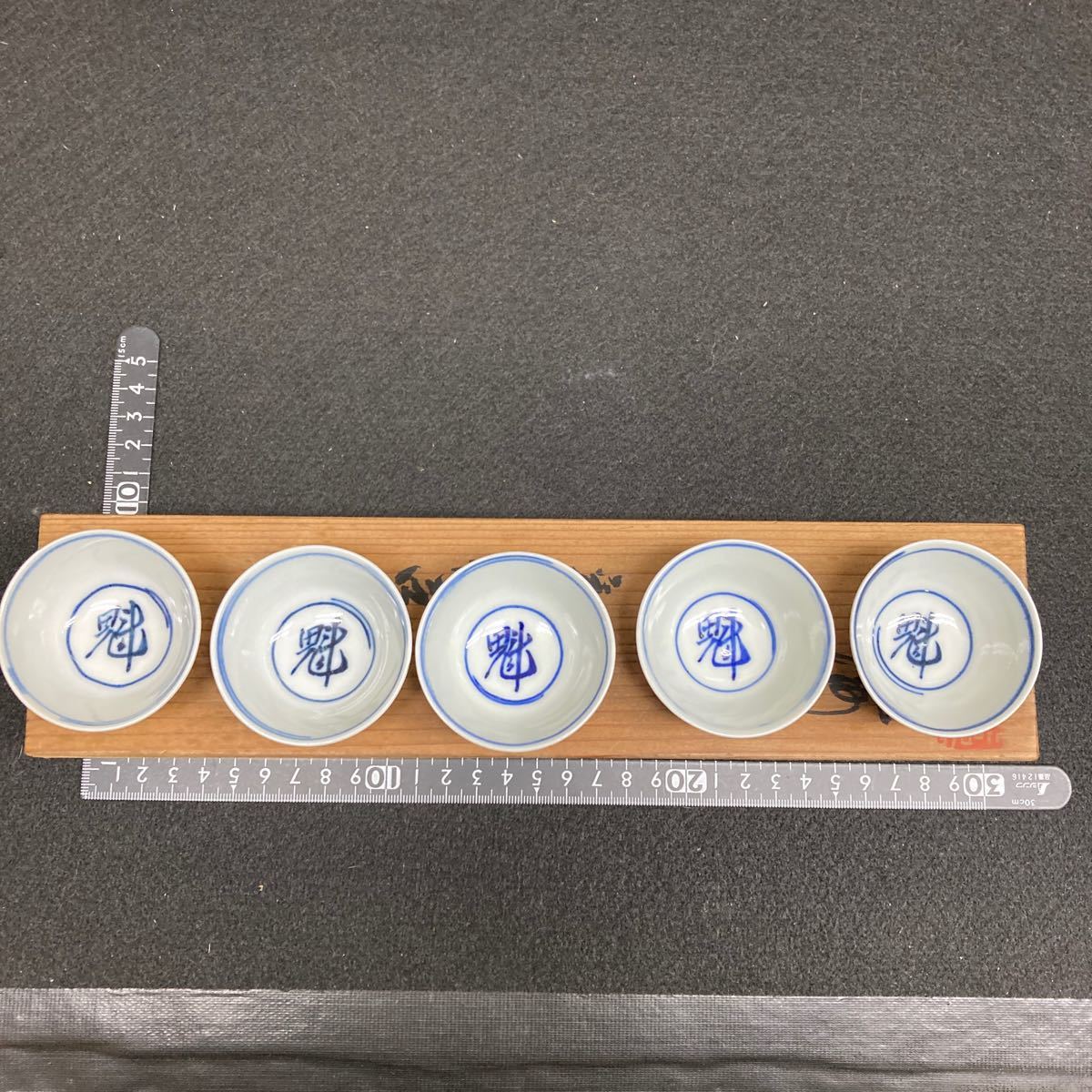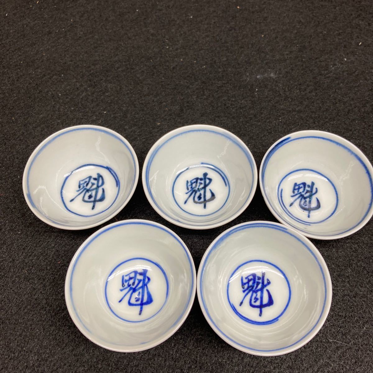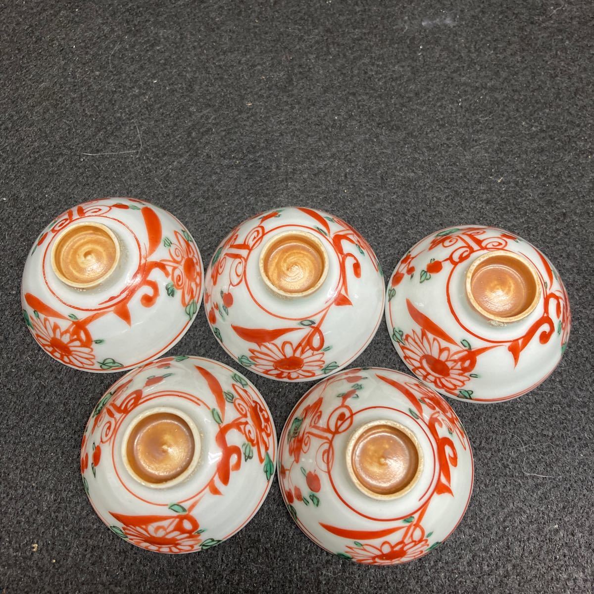 京焼き 橘吉造 呉須赤絵 盃   五客組 共箱付き アンテーク  盃に陶印有りません