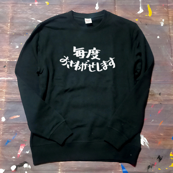 送料無料【毎度おさわがせします。】長袖トレーナー /ブラック★選べる3サイズ/M L XL / 8.4オンス