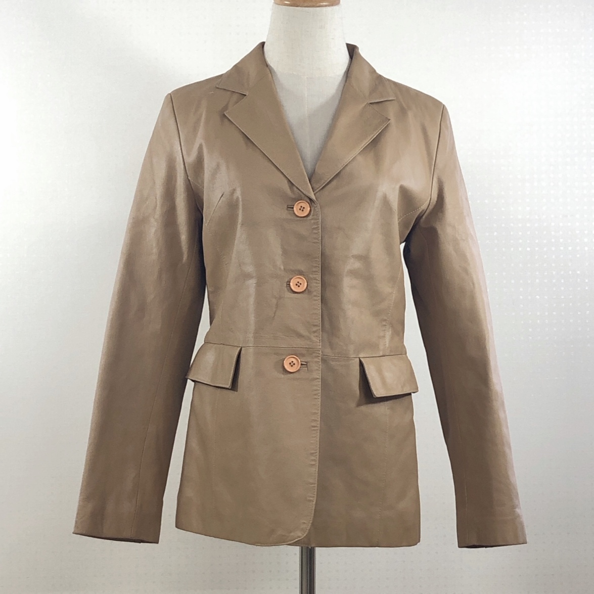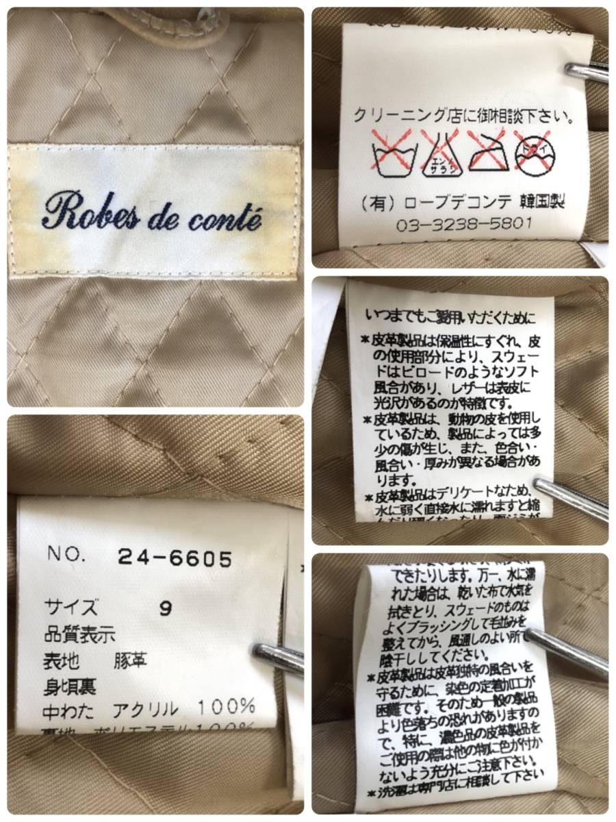 Y0237 ROBES DE CONTE ローブデコンテ レディース トップス レザージャケット 長袖 韓国製 9号 Mサイズ ブラウン 茶 無地 豚革 上質 高級感