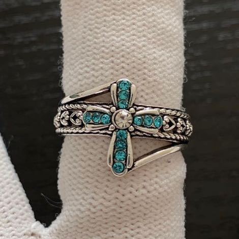 レディース メンズ 男女兼用 ユニセックス 十字架 ラインストーン ストーン 宝石 ジュエリー 水色 ブルー 病み 地雷 地雷系 ゴスロリ