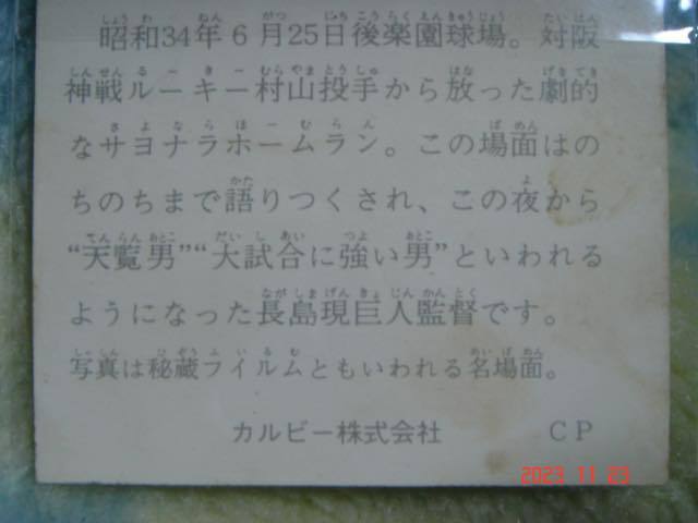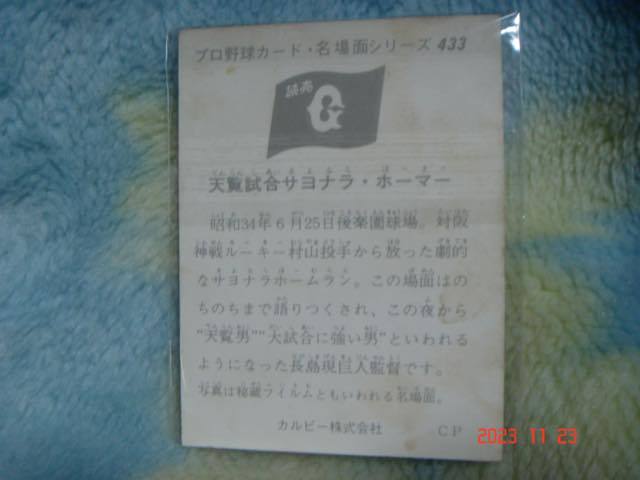 激レア カルビー74年 プロ野球カード NO.433『天覧試合サヨナラ・ホーマー』(長島/巨人)