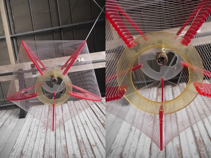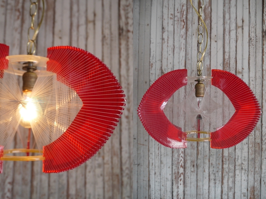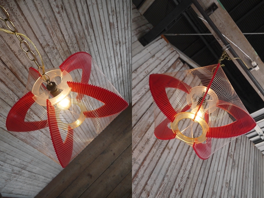 | 商品説明 岡山STAGEより出品します。アメリカで買い付けたアンティークのストリングス吊り下げランプです。稀少なレッドカラーのアクリルフレームに細かくストリングスが編まれた人気のランプです。灯りをともすとフレームとストリングスを通して雰囲気良く光りがこぼれます。ミッドセンチュリーならではのデザインが魅力的でインテリアのアクセントにお勧めです。電球は付属しませんが市販のE26mm口径の一般的なタイプですのでご用意ください。(アクリル製のシェードですので熱が出にくいLED電球か蛍光灯電球をご使用ください。)状態ですが、全体的に傷や擦れ、汚れ、くすみ、メタル部分にサビ、多少の歪み等の使用感ございますが雰囲気を著しく損なうようなダメージはなくアンティークならではの良い状態かと思います。あくまでアンティークになりますのでご理解いただける方のご購入をよろしくお願い致します。 サイズ 高さ約26cm、直径約45cmです。 予定発送方法 保障の利く佐川急便の元払い160cmサイズ料金で行います。 コメント コンセント式ですので別途735円でシーリング式への交換と長さ調節もいたしますのでお気軽にご相談ください。(現状チェーンは約80cmです。切り縮めは無料、延長の場合は要相談)店頭でも販売しております。タッチの差で売れた場合はご了承下さい。■落札後の連絡及びご質問の返答は基本的に午前10時~午後6時までとさせて頂きます。毎週水、木曜日、年末年始や時間外でのご連絡は休み明け及び翌日のご連絡となりますので予めご了承下さい。 STAGEホームページ https://stage-stage.ocnk.net// |