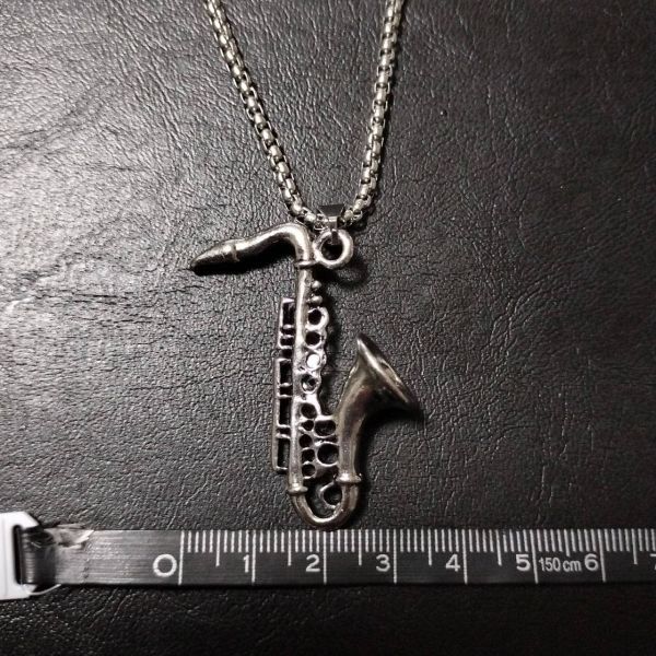 ネックレス シルバー チェーン サックス Saxophone 木管 楽器 ユニセックス メンズ レディース 音楽 吹奏楽 ヴィンテージ ペンダント