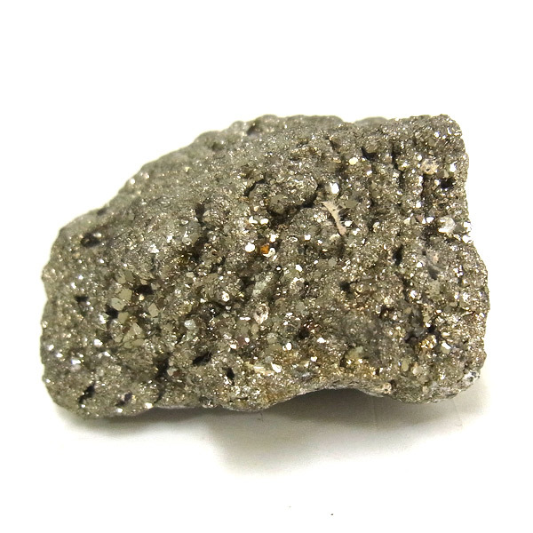 ペルー産のパイライト原石です。コロッとかわいらしいサイズでキラキラが信じられないほどまぶしい原石。パイライトは、火山活動の活発な場所で生成されます。結晶は大変整った六面体や八面体です。金と間違えるほどのゴールドで、硫黄と鉄で構成された鉱物の一種です。