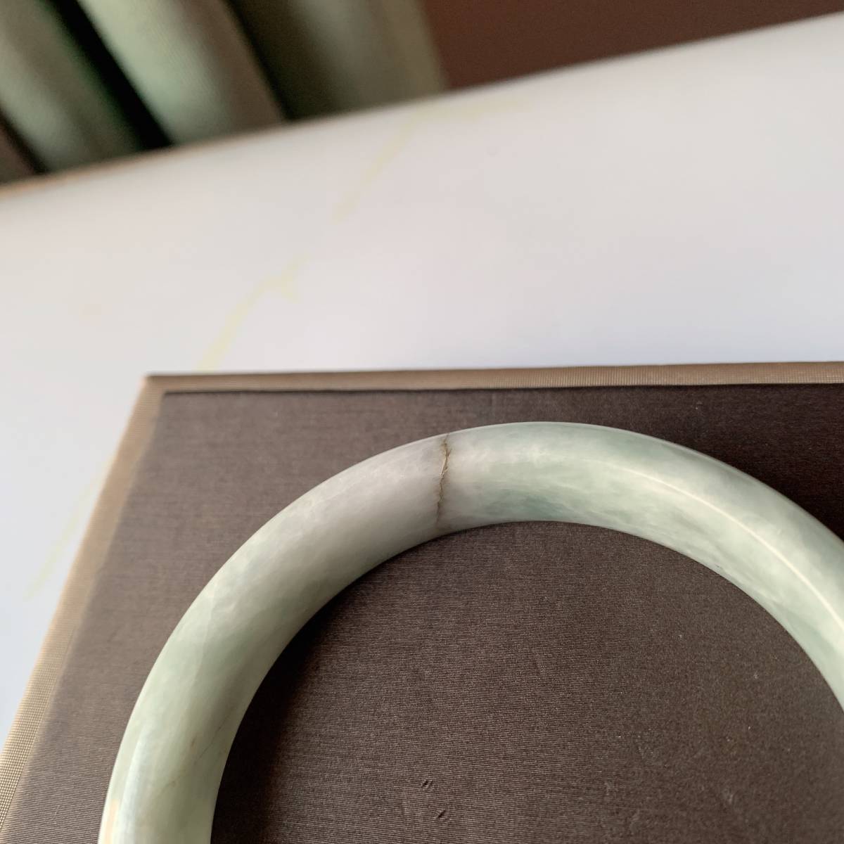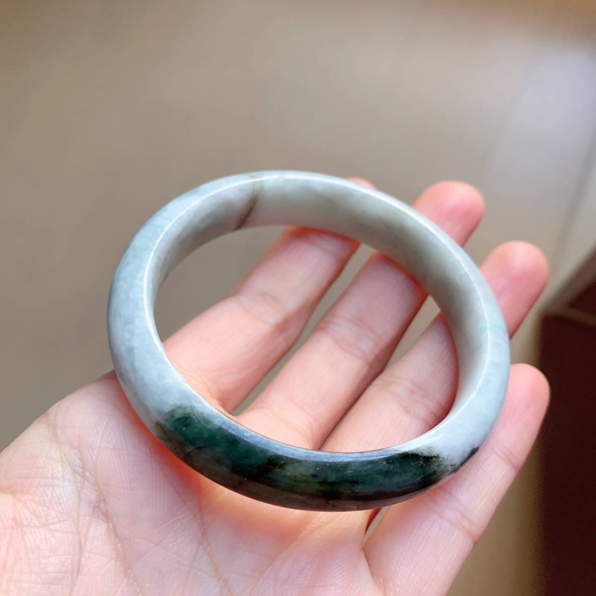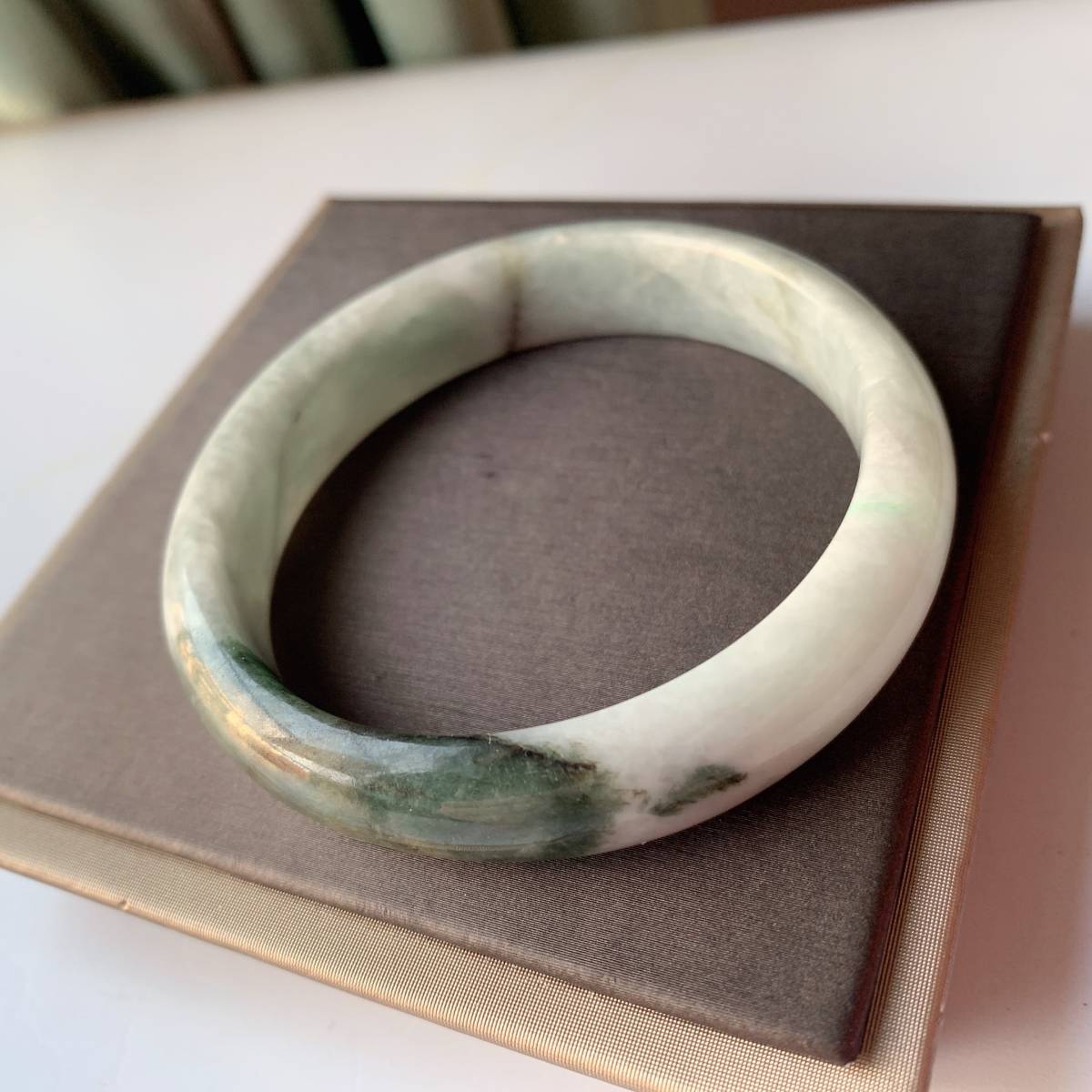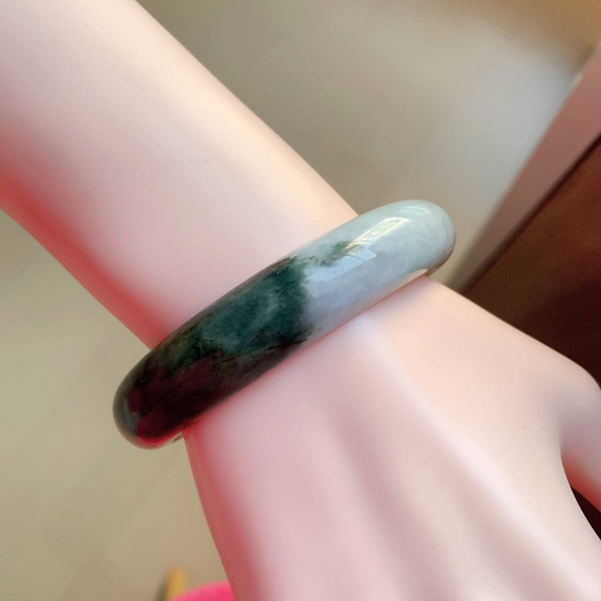 訳あり◇ジェイド(本翡翠)◇ヒスイ◇バングル◇天然石◇パワーストーン◇巾着袋付き◇プレゼントにも 026G112915