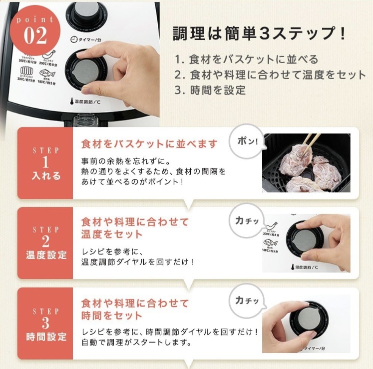 カラーラ ショップジャパン ノンフライヤー ヘルシー フライドポテト 唐揚げ 温め直し ケーキ 簡単操作★便利