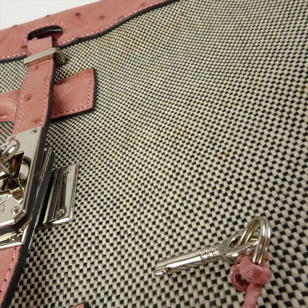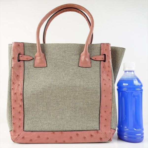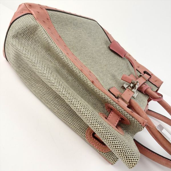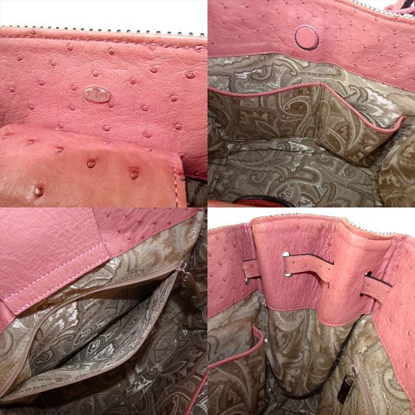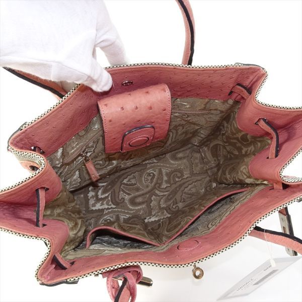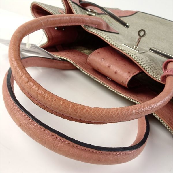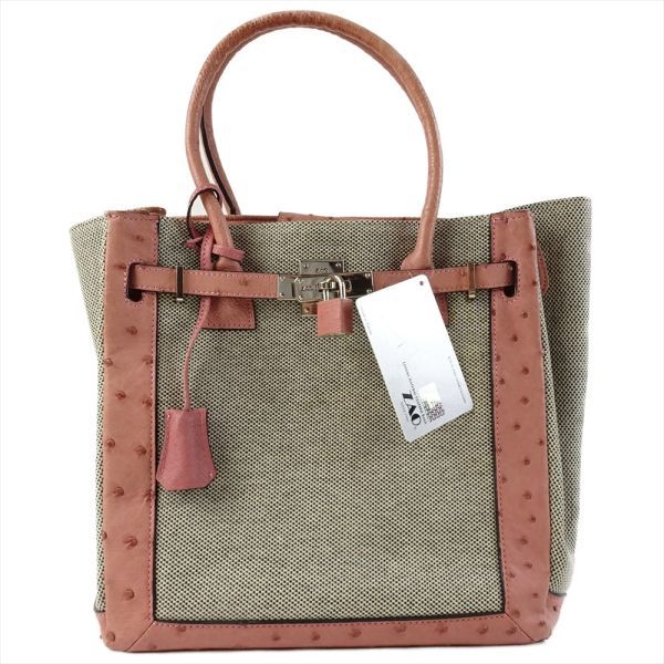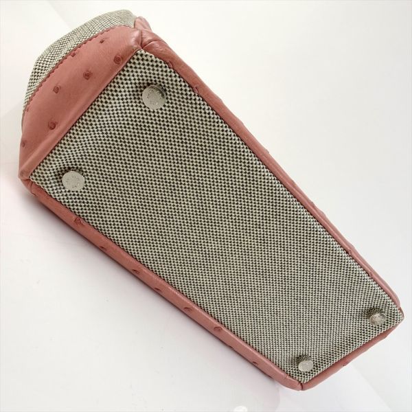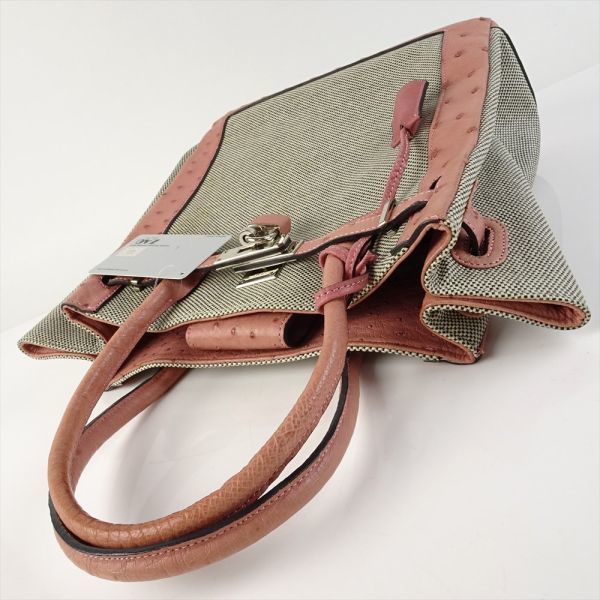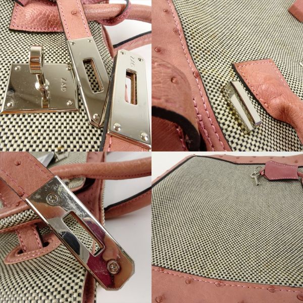 オーストリッチレザー ホリデーハンドバッグ ピンク ベージュ ZAO シルバー金具 フォーマル 通勤 外ポケット 鍵付き 本革 ダチョウ革 4603