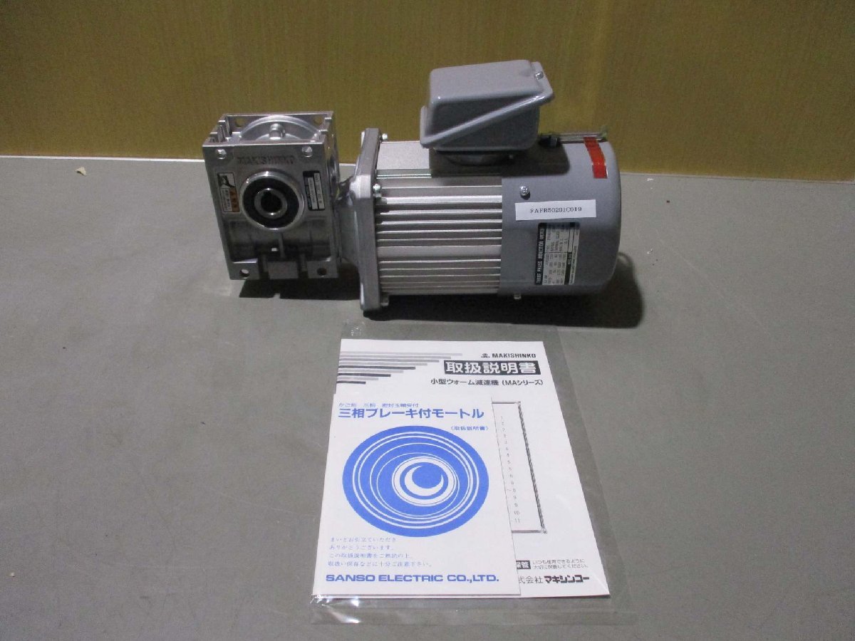 新古 MAKISHINKO 小型ウォーム減速機 MAO32C60B / SANSO 三相ブレーキ付モートル TFF4516AM 0.1kW(FAFR50201C019)