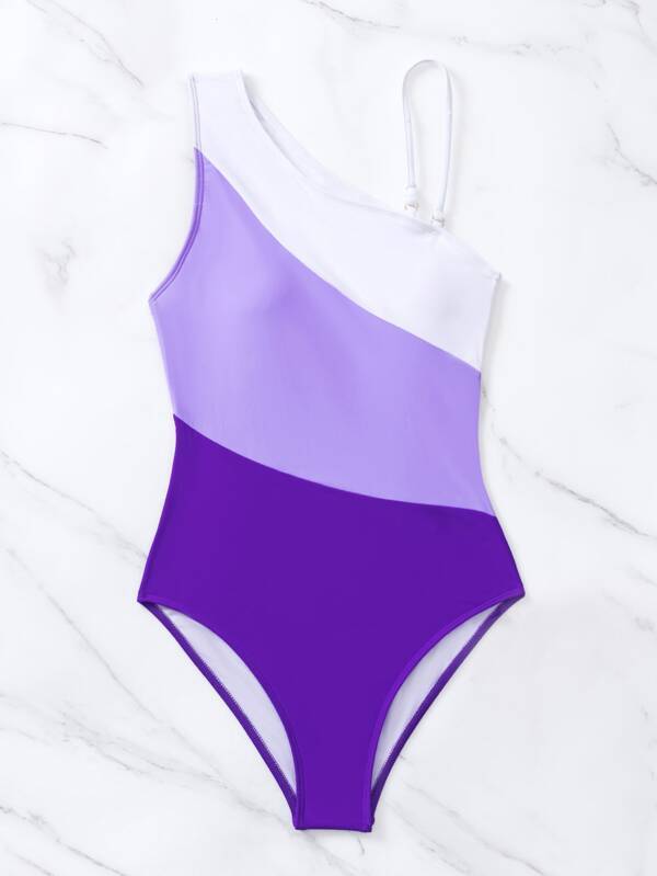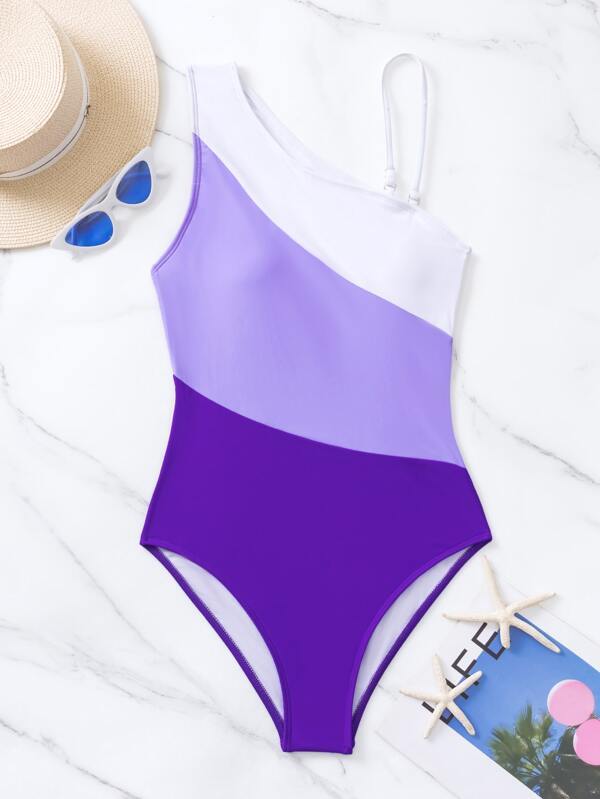レディース 水着 ワンピース カラーブロック カットアウト ワンショルダー ワンピース水着