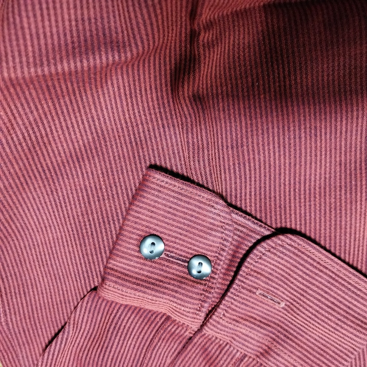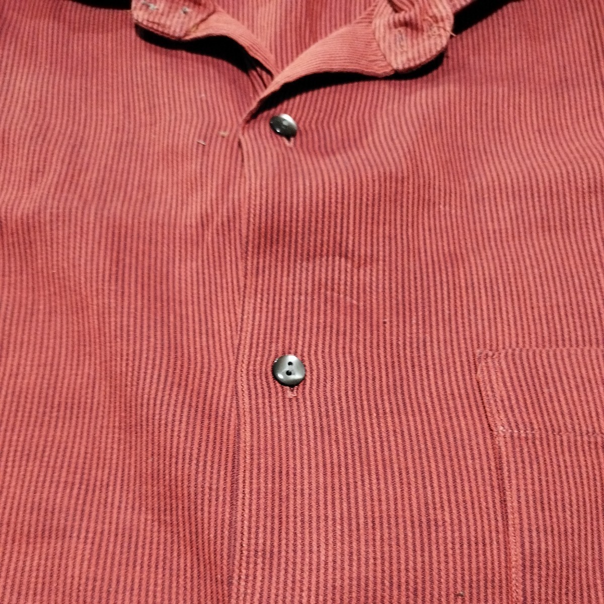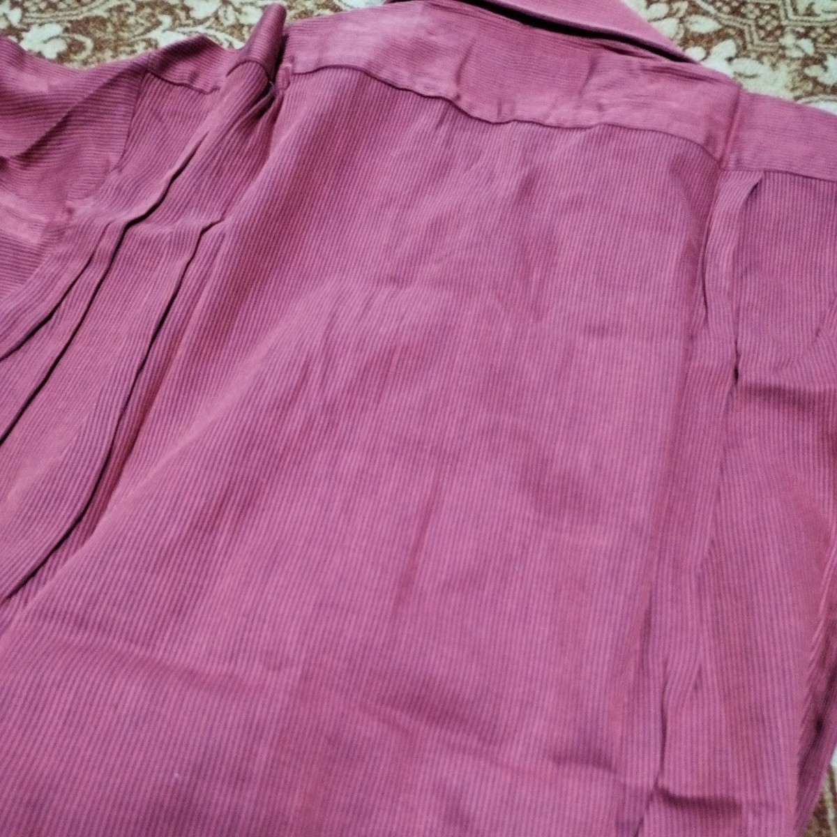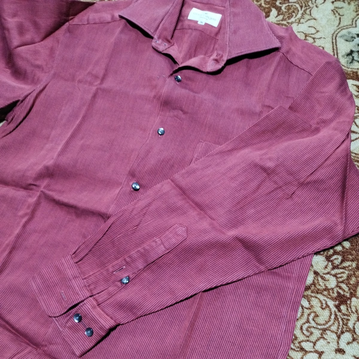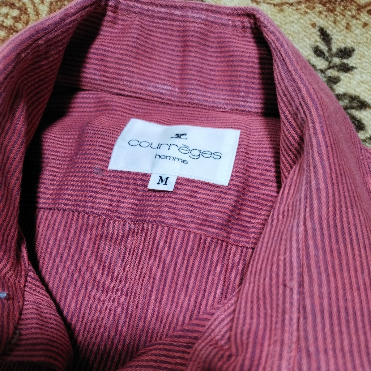 Courreges の長袖シャツです。デパートで購入し、元値は高い高級品です。何回か着用しましたが、気になる大きな傷みや汚れはないと思います。家庭保管のため、多少のたたみじわはついています。サイズアウトしたために出品します。赤系統の色のシャツですが、4枚目の写真の色が一番近いかなと思います。平置き計測の身幅は、50cmくらいです。