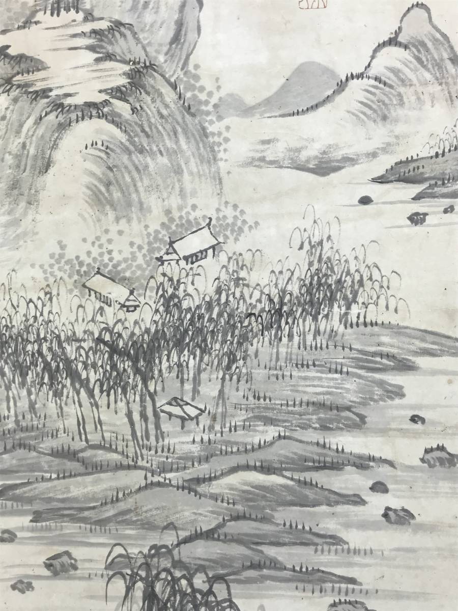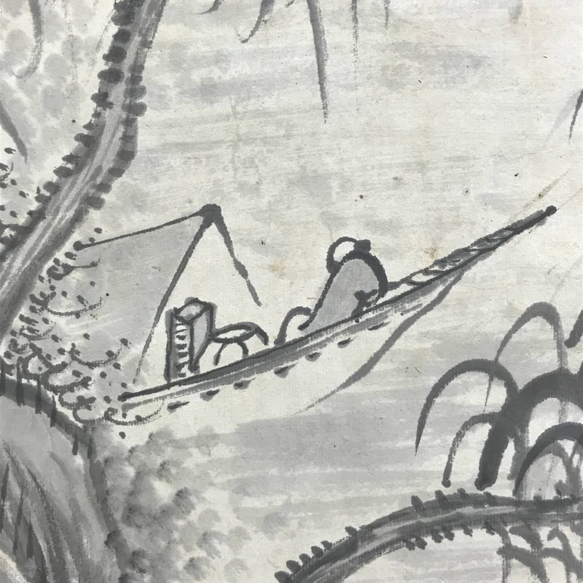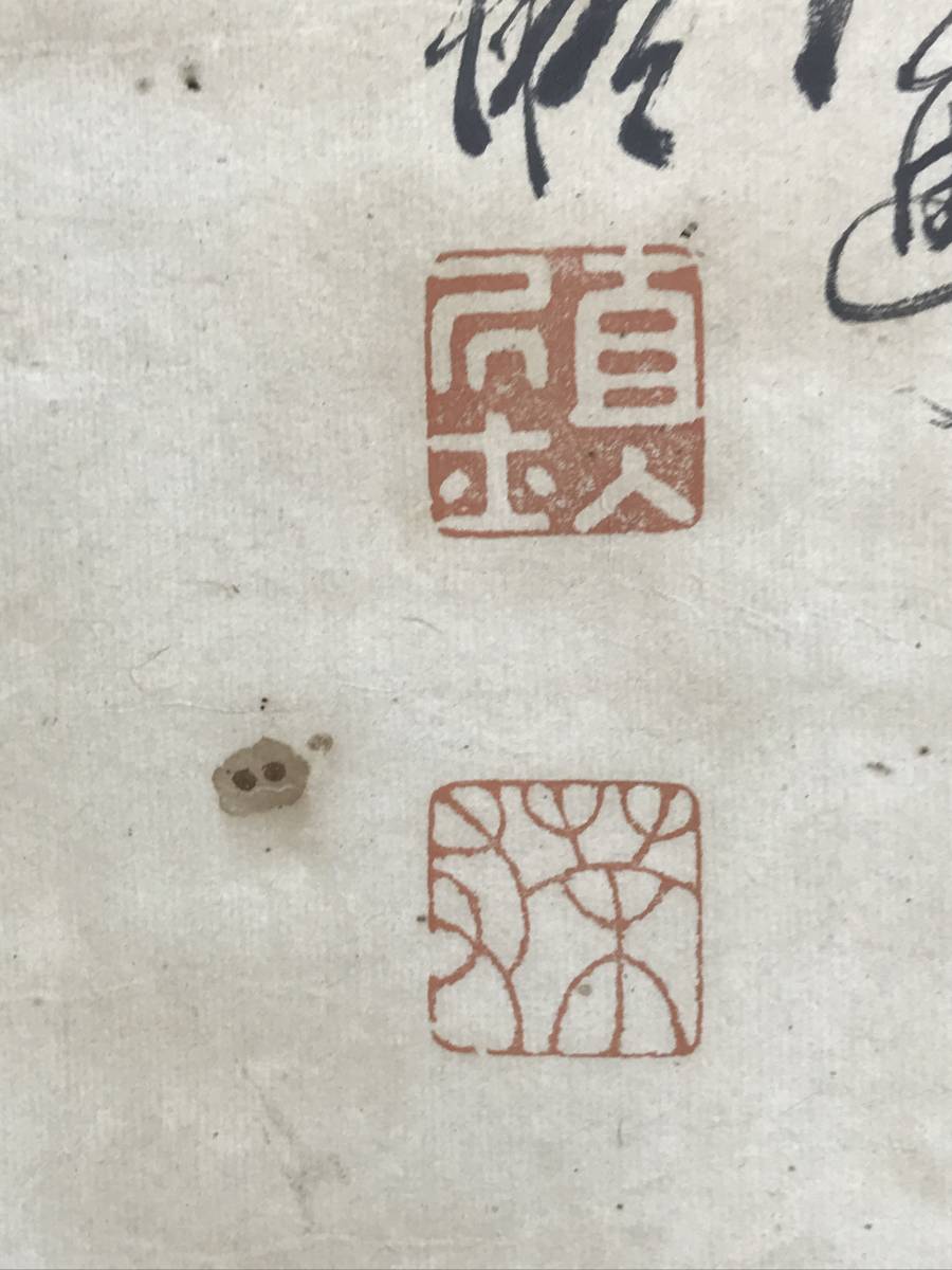 【作品状態】 本紙は紙本肉筆です。  本紙は薄汚れ、全体に多数の汚れシミあります。表装は概ね良好です。