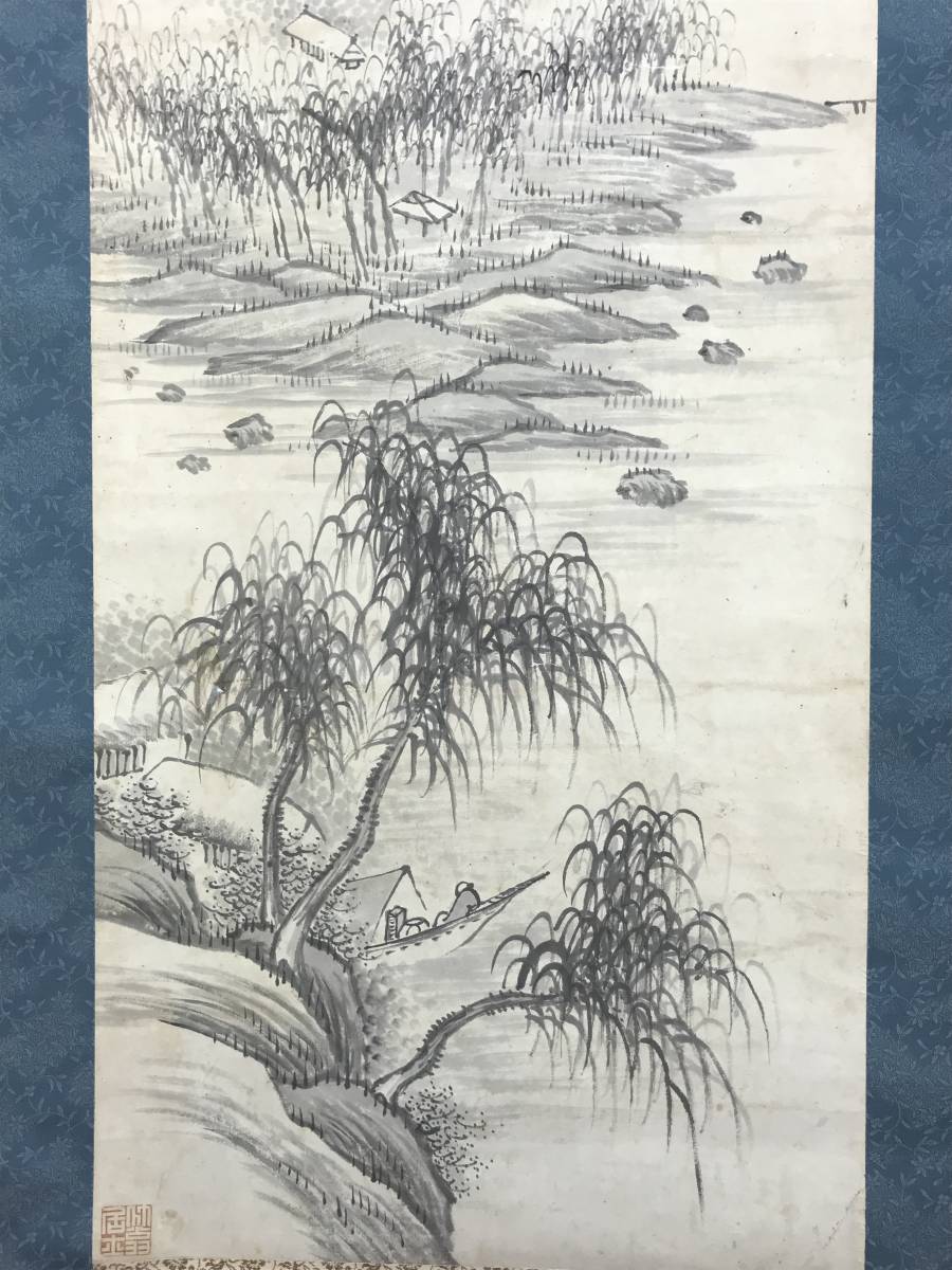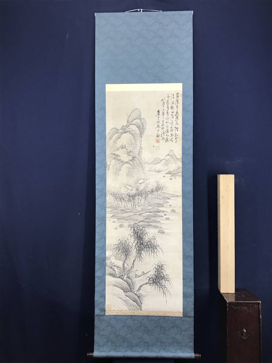 真作/田能村直入/山水画賛/山水図//掛軸☆宝船☆AD-845