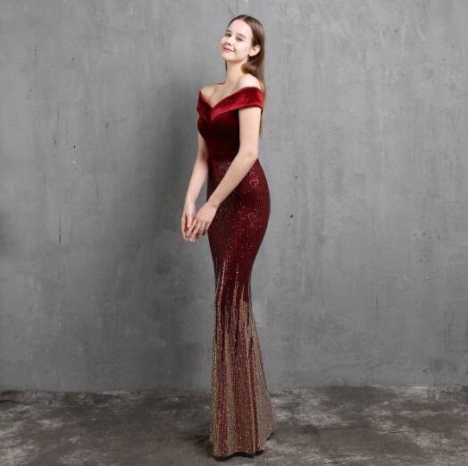 SALE 上質レディースドレス演奏会 発表会 二次会パーティー Vネック 結婚式 ステージ 撮影 イベント マキシロングドレス ワイン Sサイズ