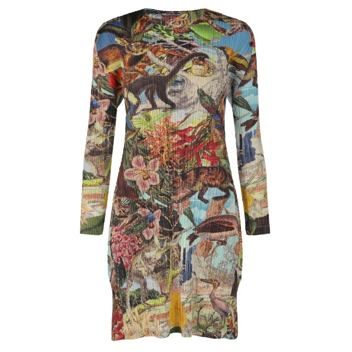 新品 PLEATS PLEASE ISSEY MIYAKE プリーツプリーズ 23AW AURORA JUNGLE 総柄 チュニック トップス MULTI 4 Y-323269