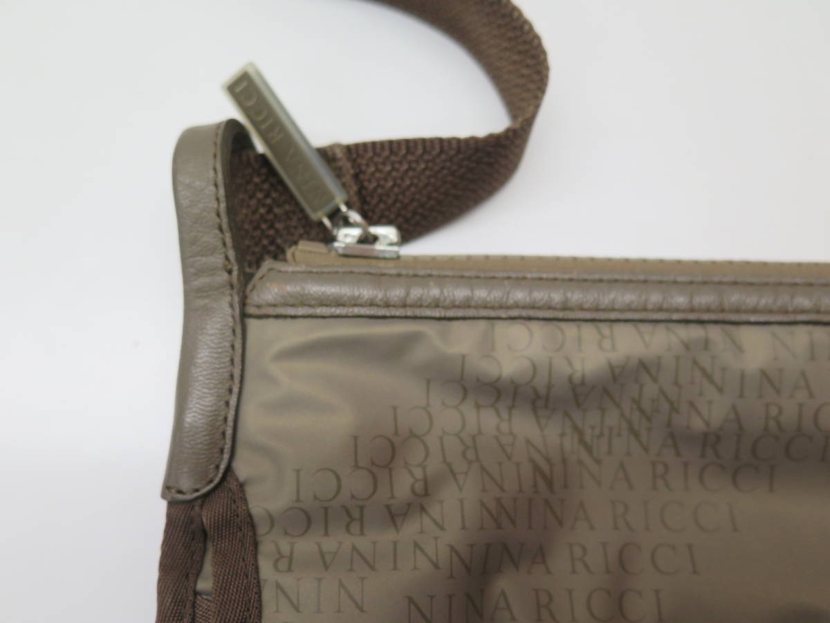 NINA RICCI ニナリッチ 総ロゴ ナイロン/レザー使い ショルダーバッグ 茶系