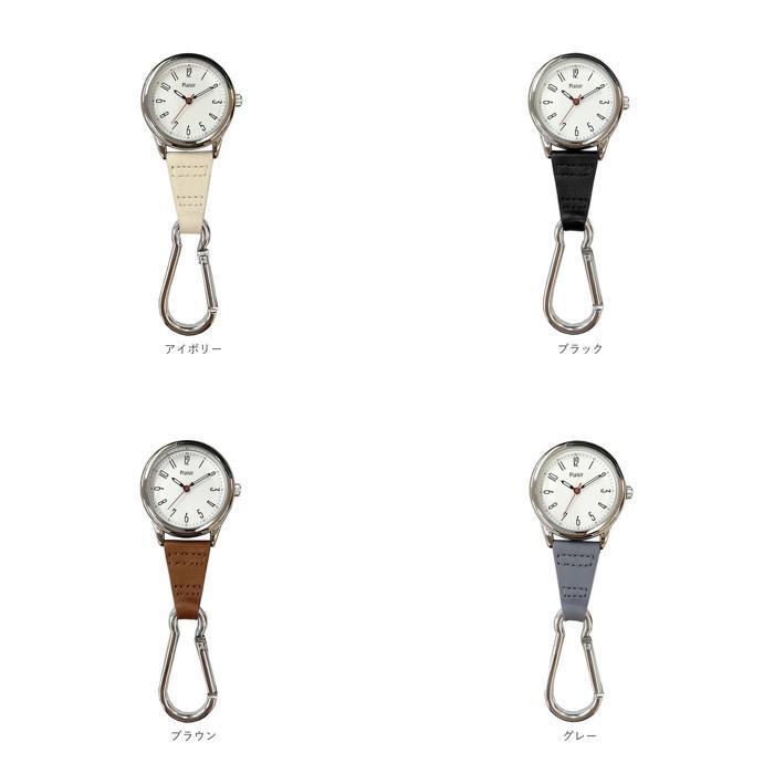 | 商品説明 | ・男女兼用で使えるスタンダードなデザインが魅力!カジュアルなカラビナウォッチが登場。 ・大きめの白色の文字盤に、すっきりとした字体の数字を放射状に並べたシンプルでお洒落なクロック・フェイス。 ・5分単位・5秒単位にも小さく数字が刻まれているので、より細かく時間が把握できる! ・アクセサリー感覚でベルトループやバッグの金具に片手で装着できる、レバー式のカラビナ付き。 ・カラビナで時計を逆さまにぶら下げて使用するのがポイント!バッグやベルトに取り付けたまま、外さずにそのまま時間が確認できて便利! ・落ち着いたカラーのフェイクレザーベルト仕様だから、ビジネススタイルからプライベートまでシーンを選ばずに使いやすい!腕時計をつけられないお仕事の方にもオススメ。 |