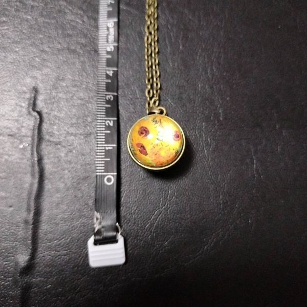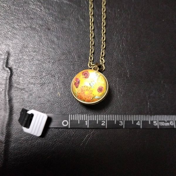 ネックレス ブロンズ チェーン 絵画 ひまわり ゴッホ レトロ 青銅 ユニセックス レディース メンズ 韓国 両面 ガラス ボール #C1939-2