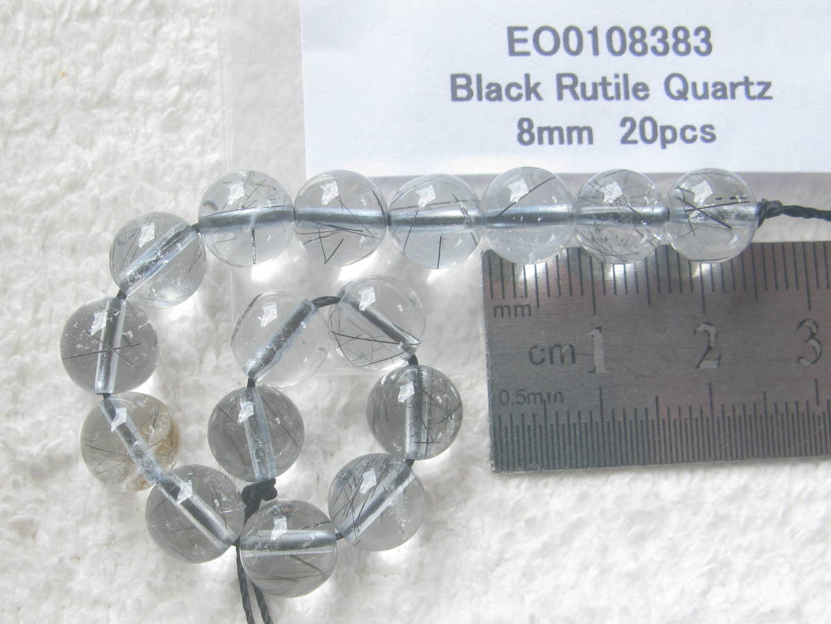 ◯送料無料★天然石&ブラックルチルクォーツ▲丸玉!8mm!20粒!!