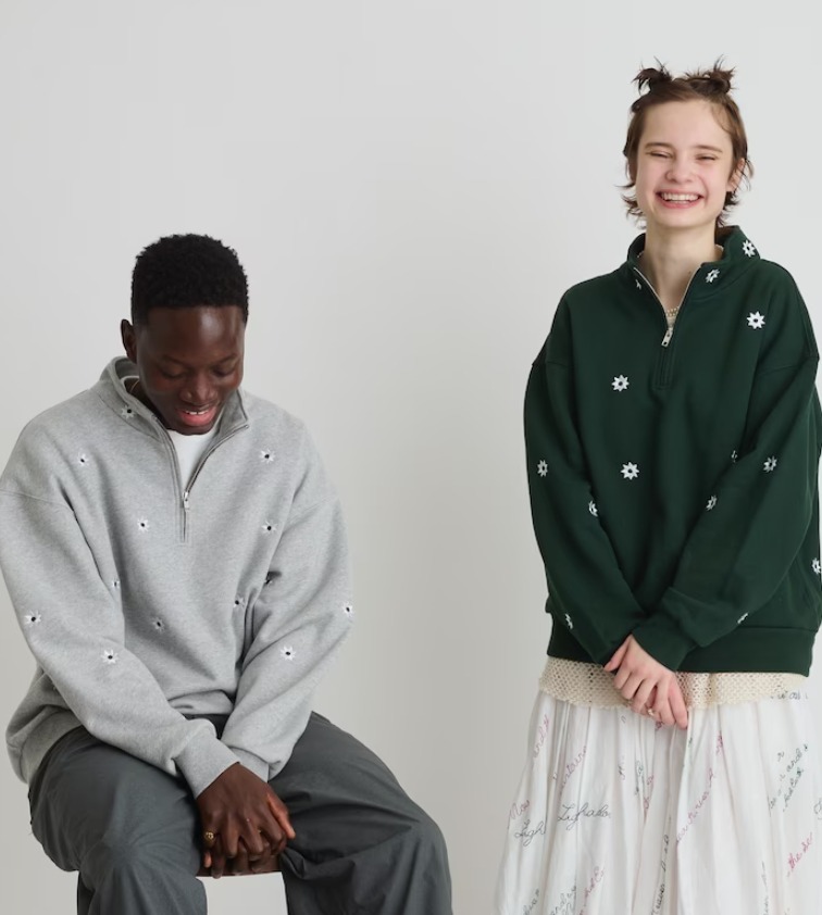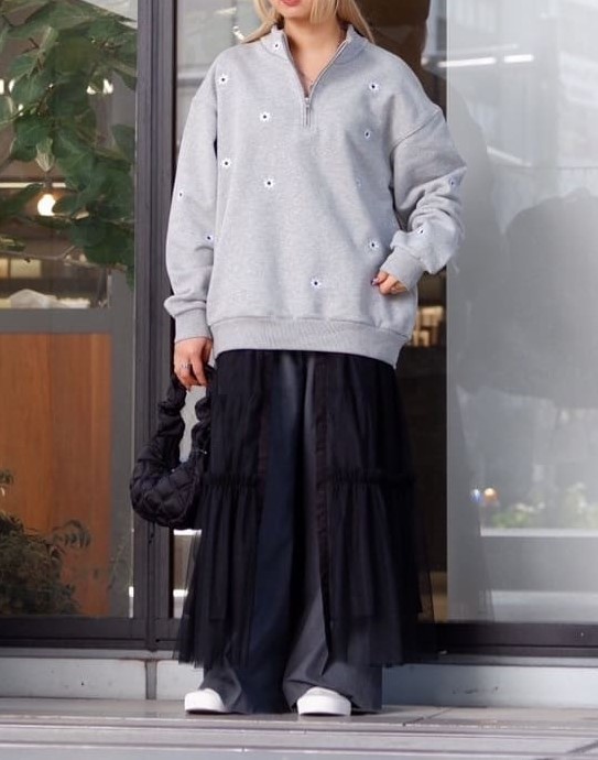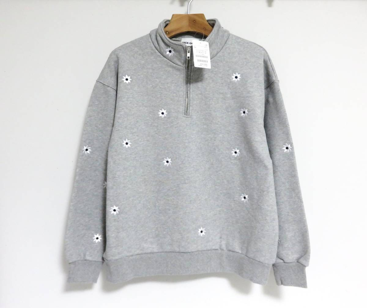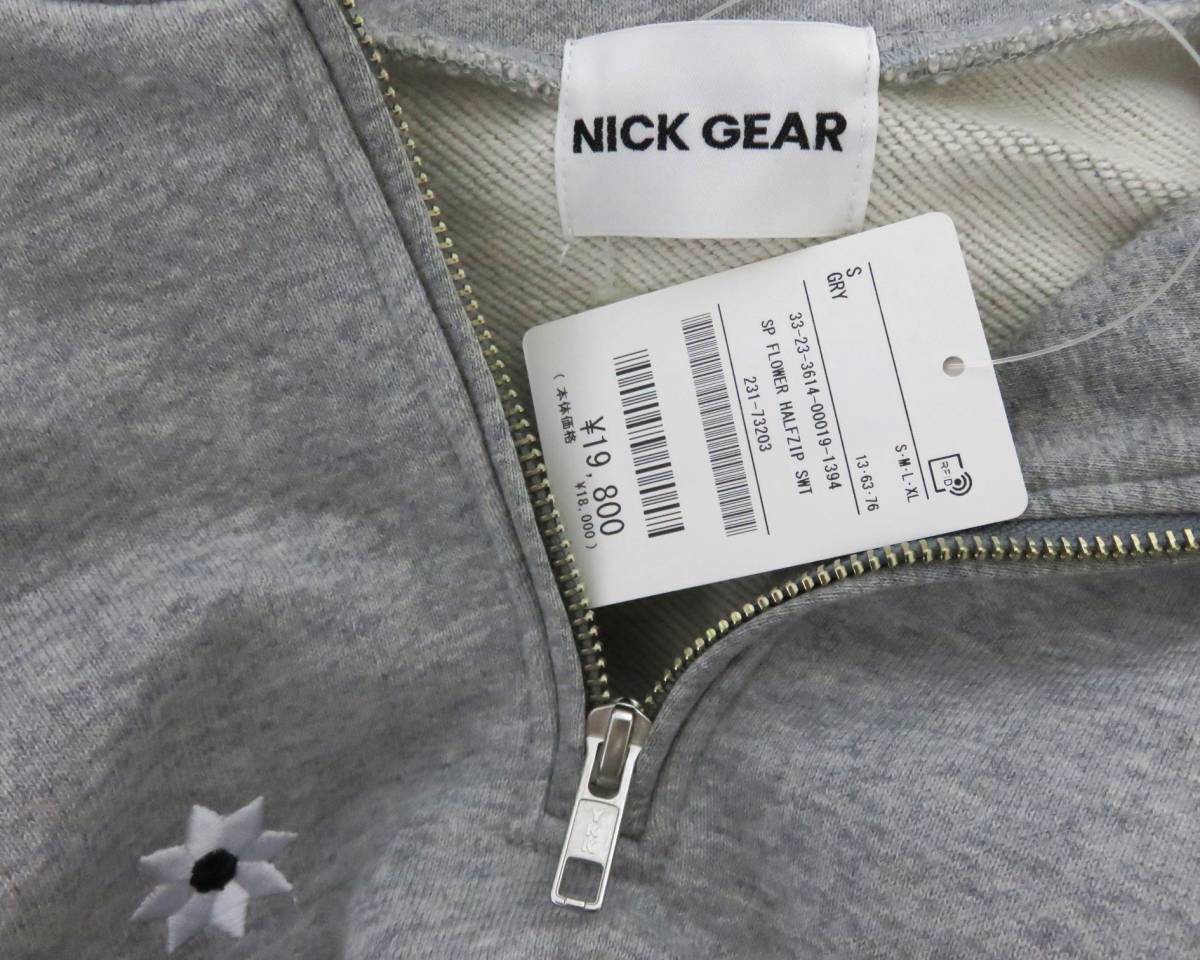 送料無料 新品 NICK GEAR FLOWER HALFZIP SWEAT S グレー ニックギア フラワー ハーフジップ スウェット